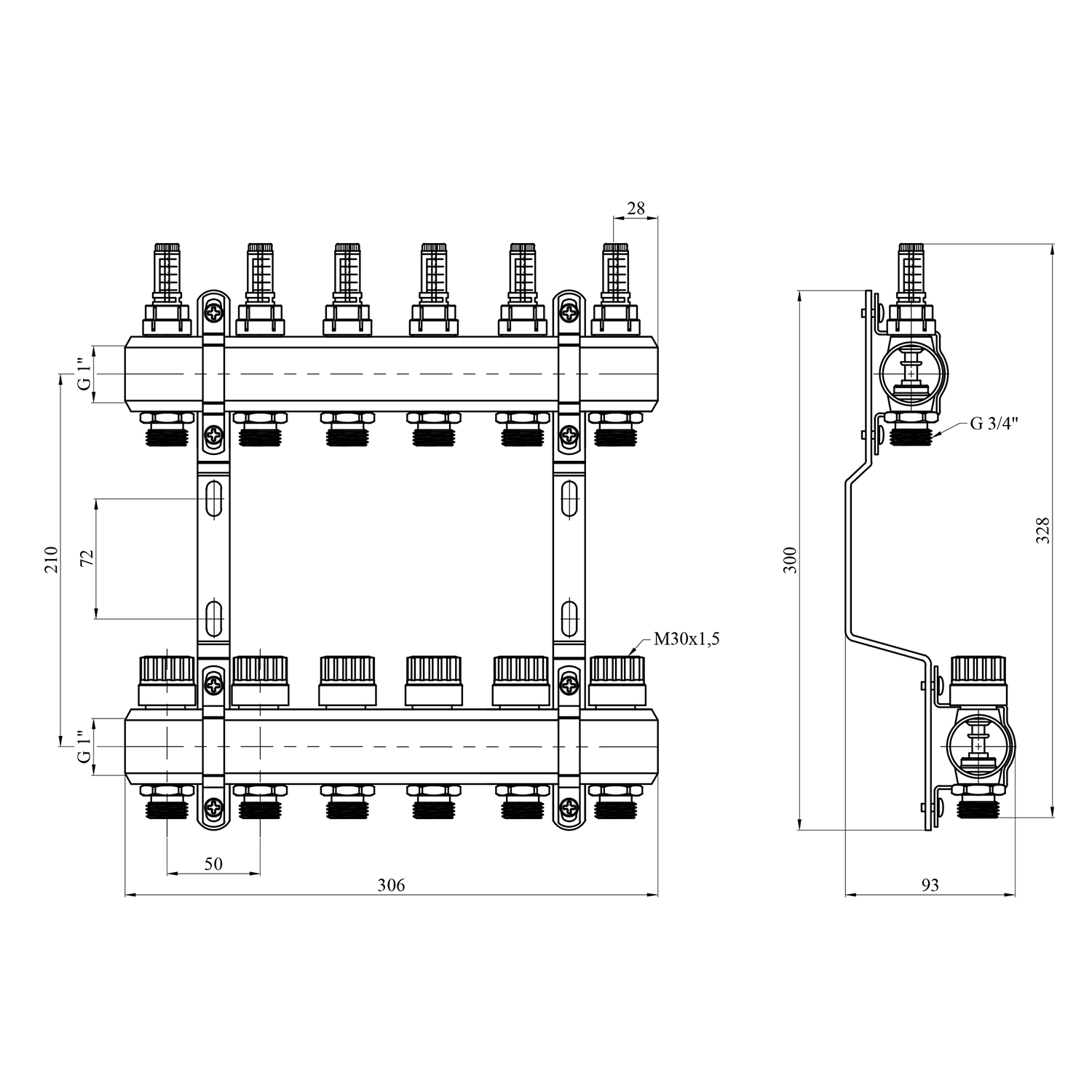 Коллектор с термовентилями, коллектор с расходомерами, крепеж