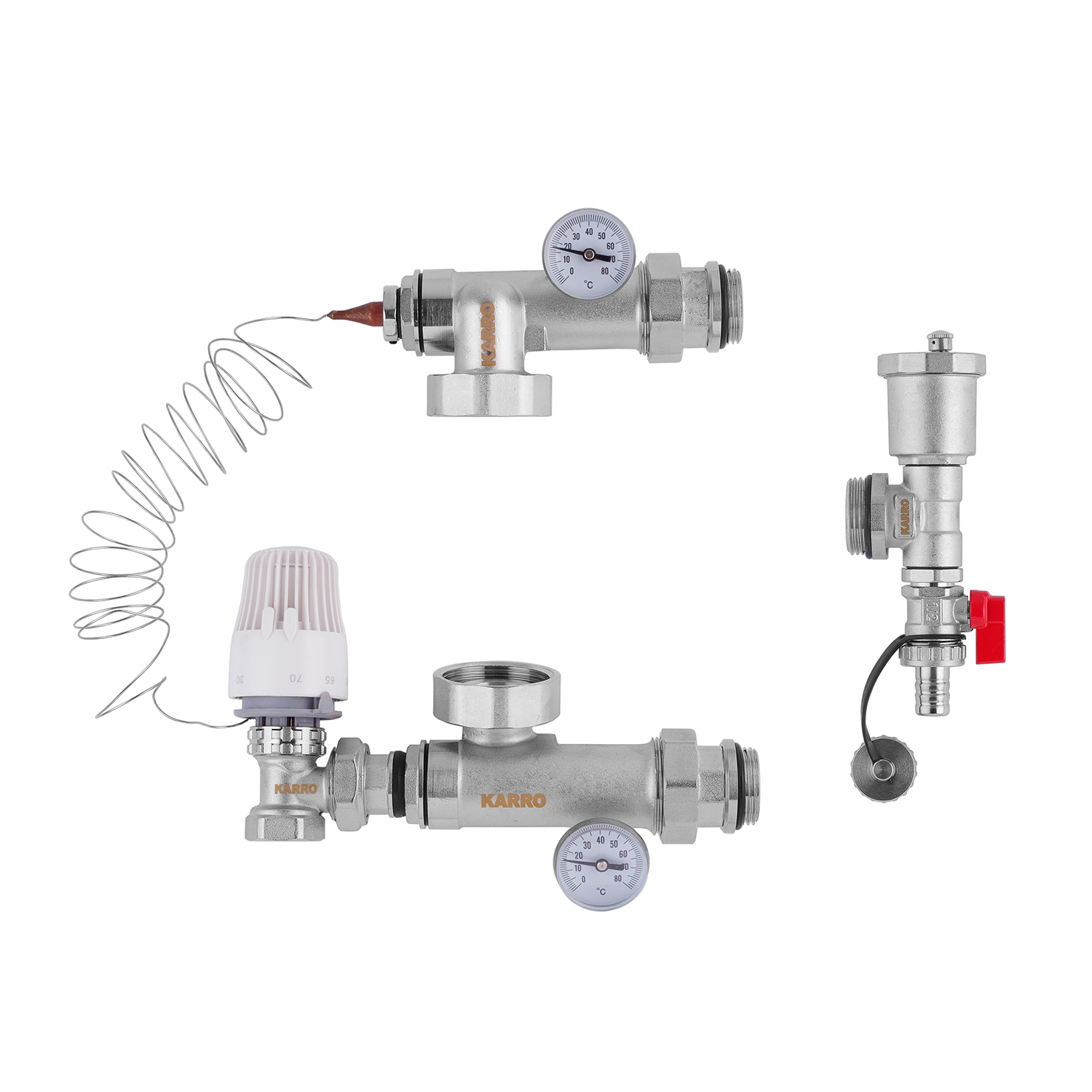 Характеристики Коллекторная группа Karro 3/4 с термостатическим краном, никель код товару CV011993