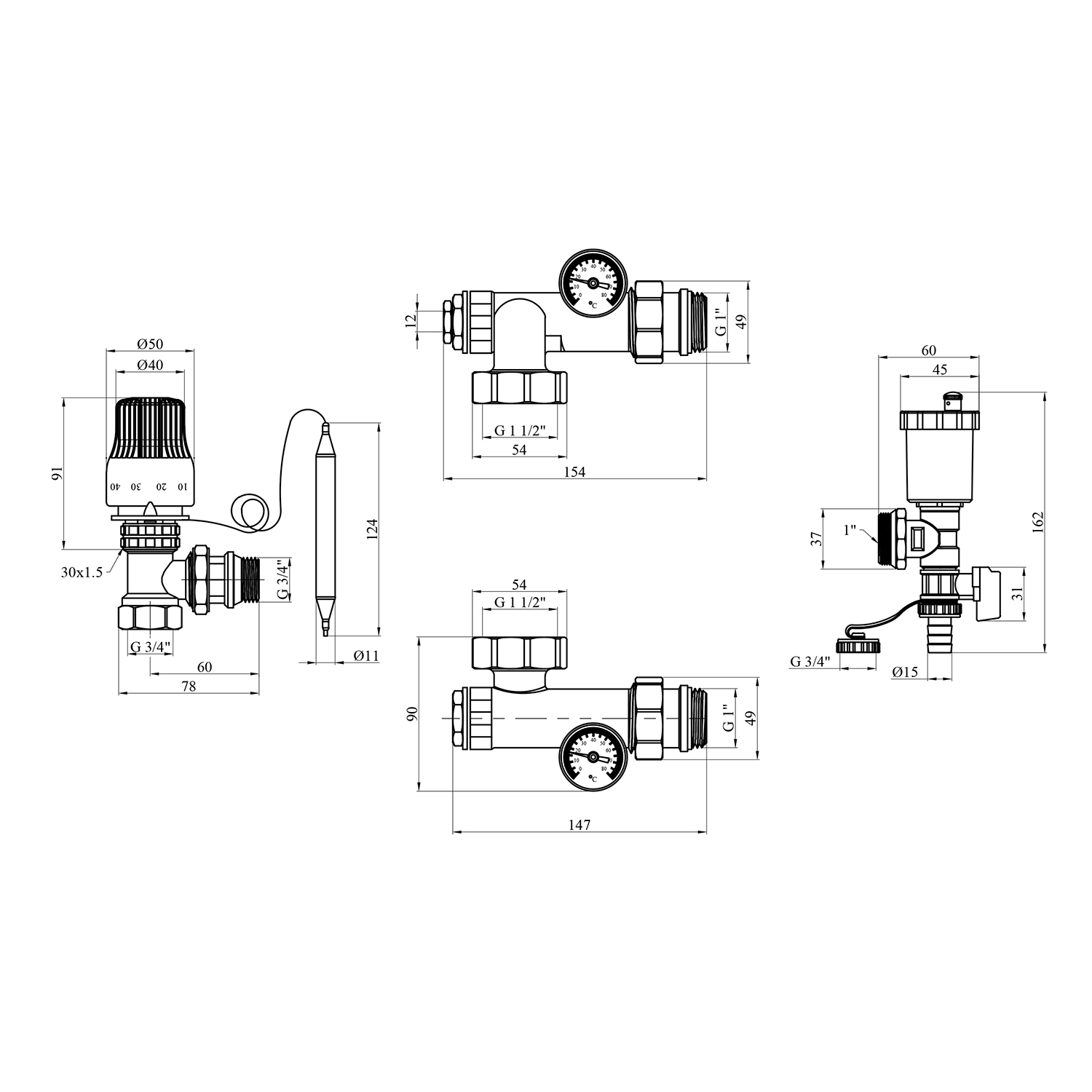 - Термостатический кран для точной регулировки.