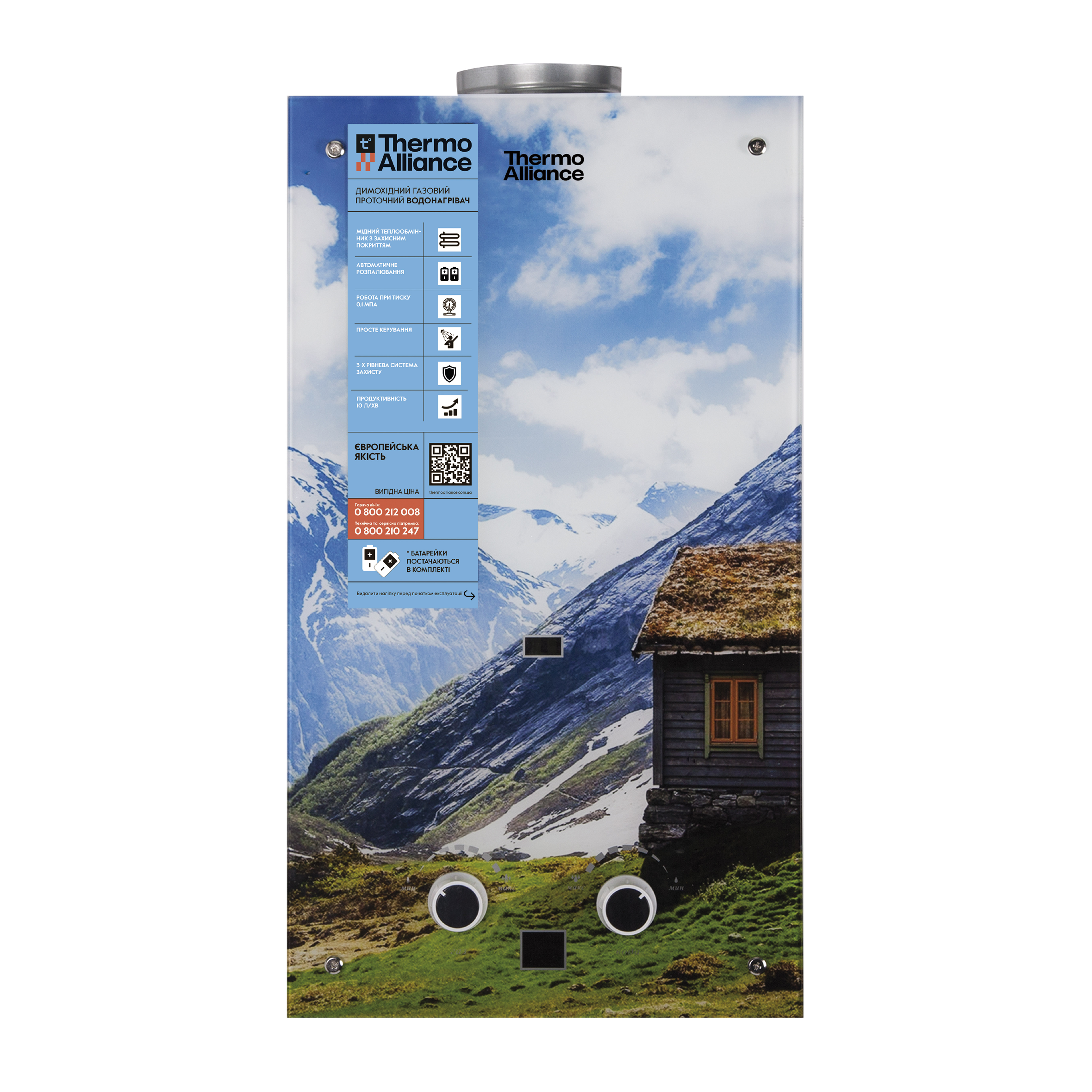 Описание Колонка газовая дымоходная Thermo Alliance JSD20-10GC 10 л панель из стекла с рисунком горы код товару SD00031247