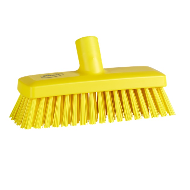 Дана щітка для підлоги і стін призначена для миття стін і простору навколо обладнання. Відповідає принципам ХАССП. За краю має похилий ворс і округлу компактну конструкцію для підвищення міцності.