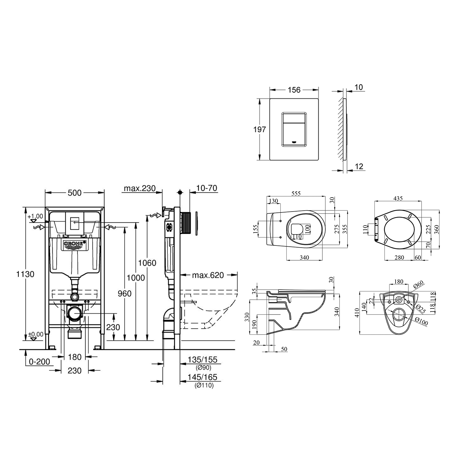 Инсталляция, панель смыва, унитаз с сиденьем.