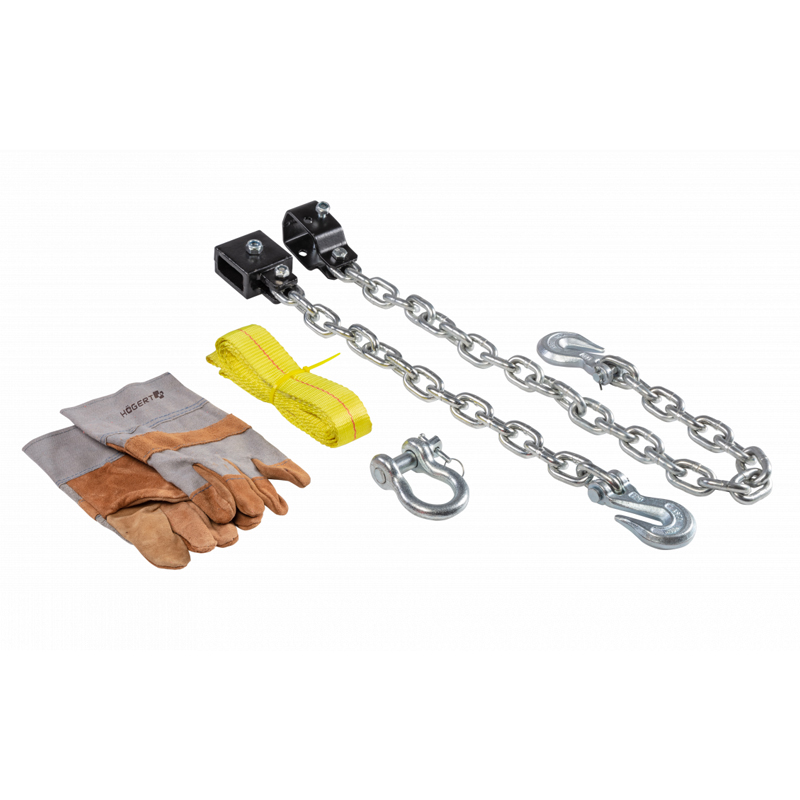 - зміст: - кріплення лебідки - натягувач лебідки - ремінь для дерева - D-кільце - рукавички - сумка.