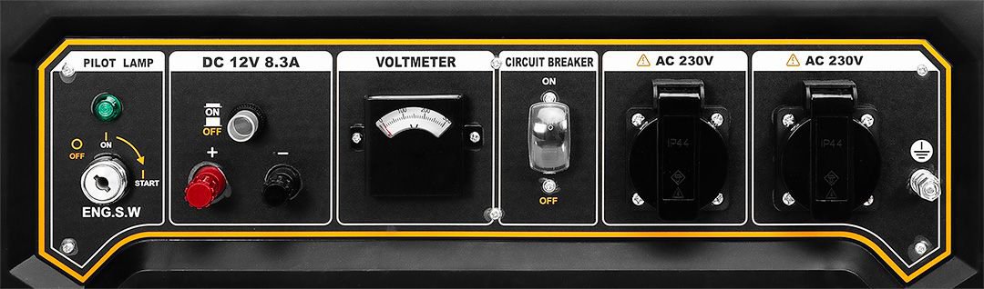 - Вольтметр, Автоматичне регулеровання напруги AVR, Датчик рівня масла, Захист двигуна від низького рівня масла, Транспортувальні колеса, Ручки для перенесення, сертифікат CE