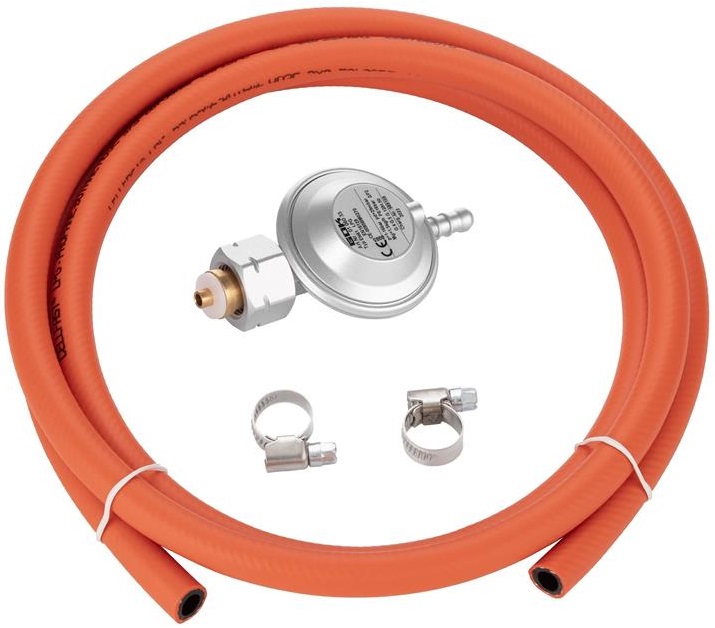 Цей комплект призначений для підключення газового балона (рекомендуємо вибухобезпечні композитні балони Hexagon Ragasco) до обладнання, яке не укомплектоване редуктором та шлангом. Підходить для газових плиток та плит, печей, грилів та інших газових пристроїв, у яких використовується пропускна здатність 1.5 кг/год.