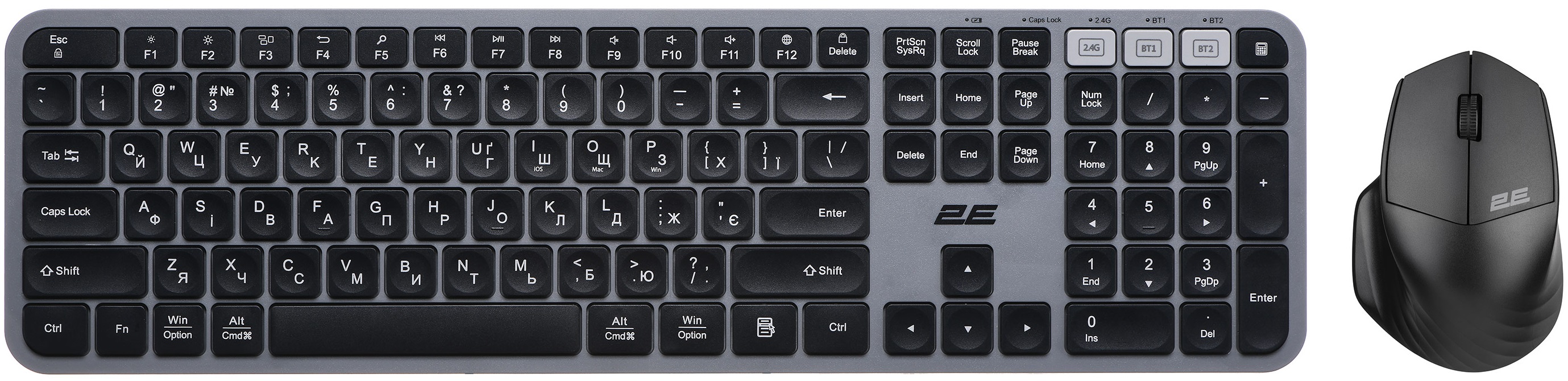 Описание Комплект клавіатура та миша 2E MK440 WL/BT, EN/UK, сіро-чорний код товару 2E-MK440WBGR_UA