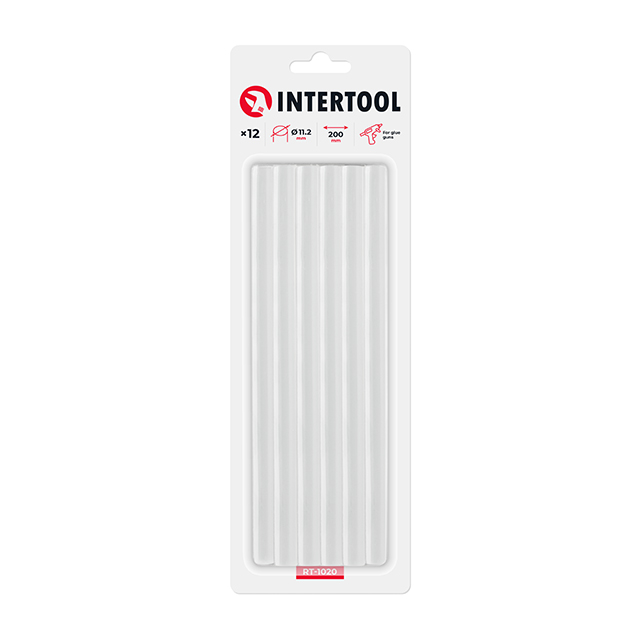 Характеристики Комплект клеевых стержней 11,2 мм * 200 мм, 12 шт INTERTOOL RT-1020 код товару RT-1020
