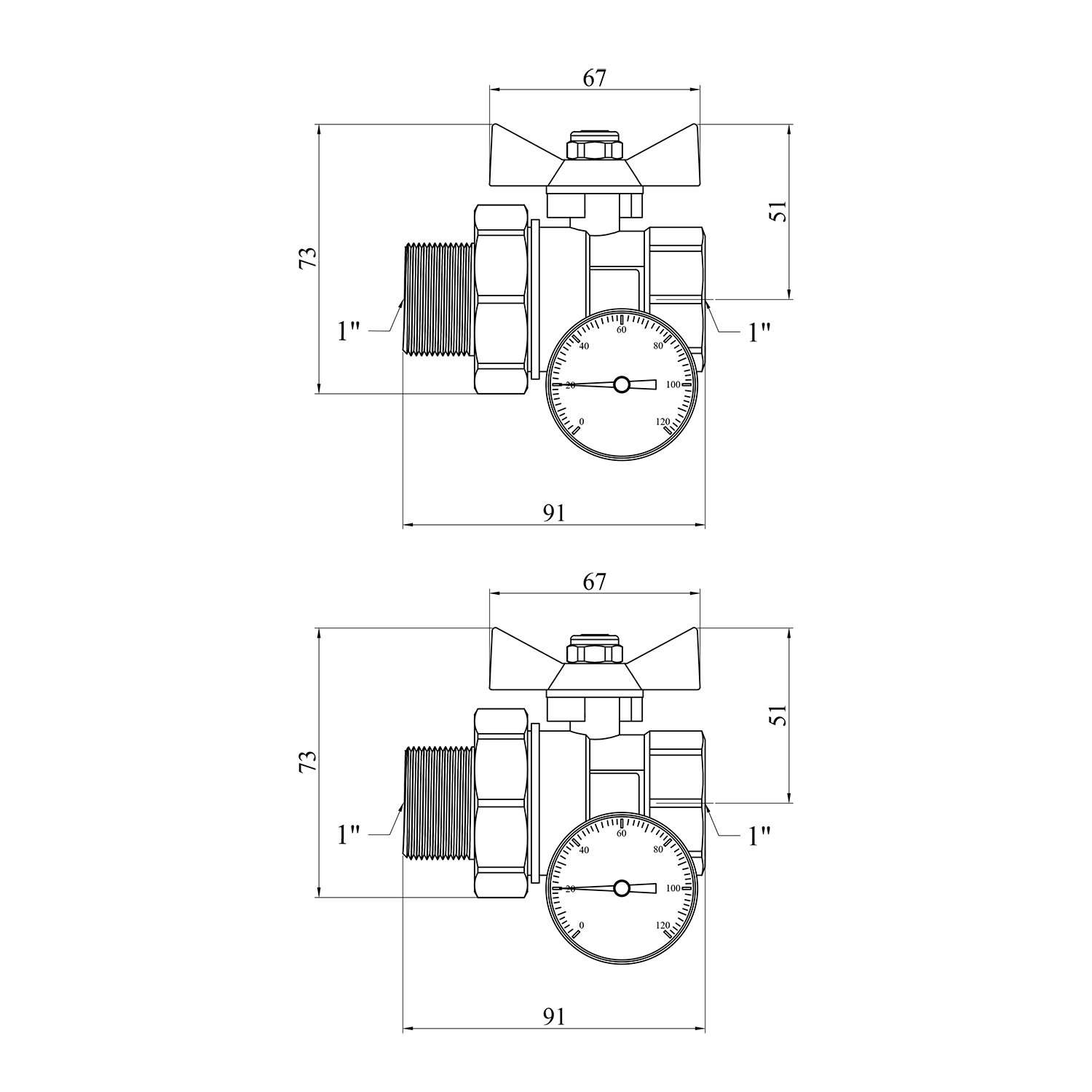Комплект кранов-американка с термометром STA G1 бабочка, никель