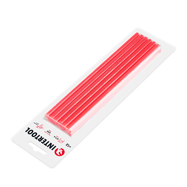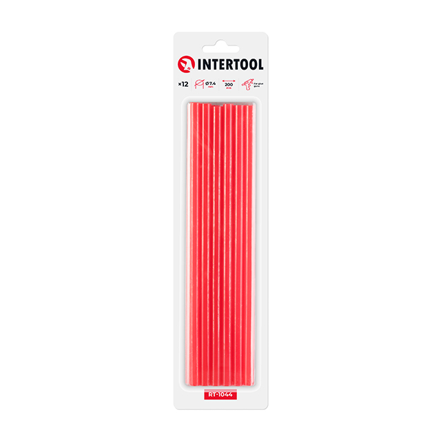 Описание Комплект клеевых стержней красных 7.4мм*200мм, 12шт. INTERTOOL RT-1044 код товару RT-1044
