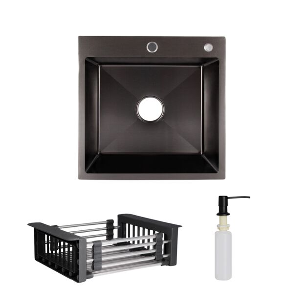 Комплект Lidz H5050B: Мойка интегрированная BlackPVD с дозатором и корзиной код товару SD00053650 Lidz