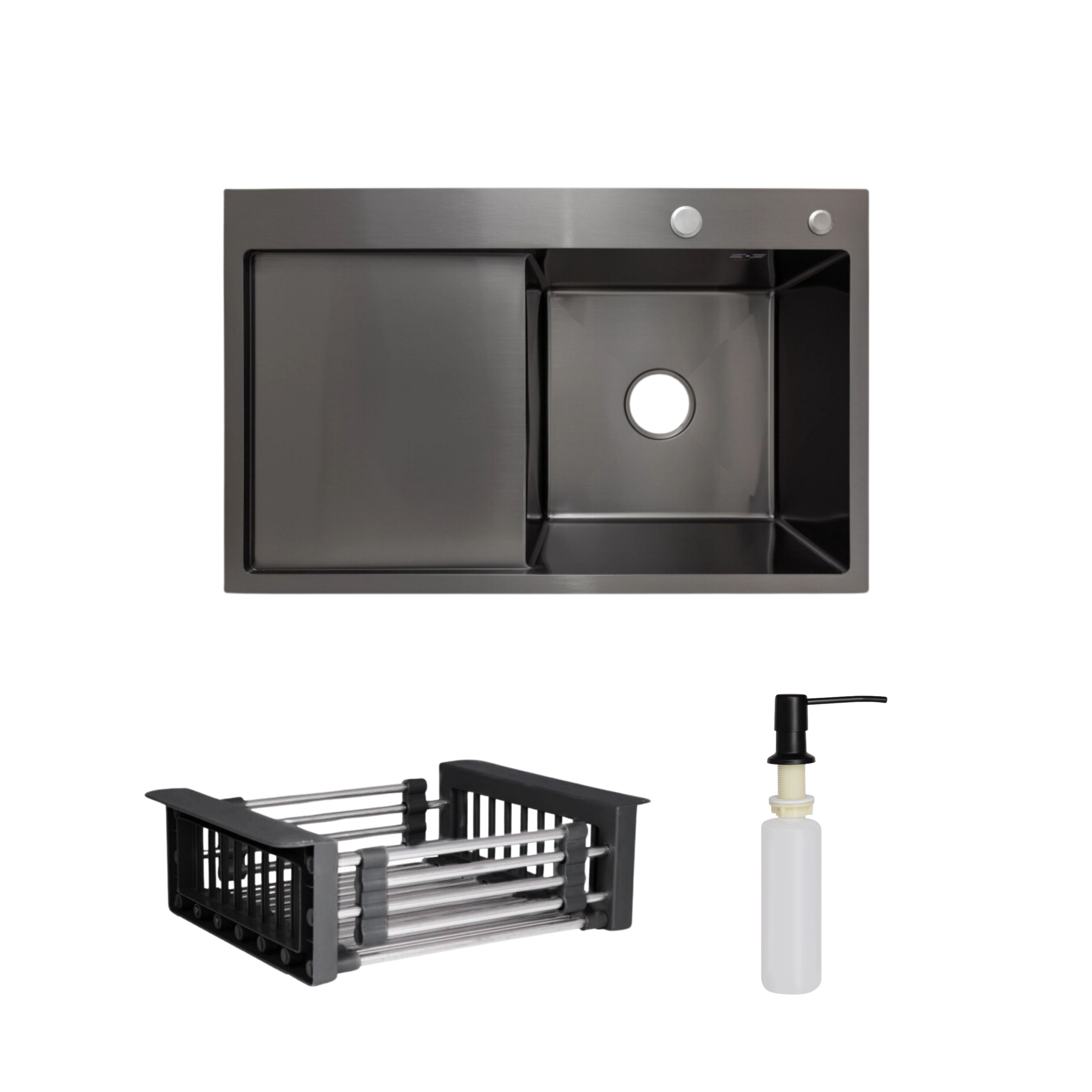 Комплект Lidz H7849BL: интегрированная мойка BlackPVD с дозатором и корзиной