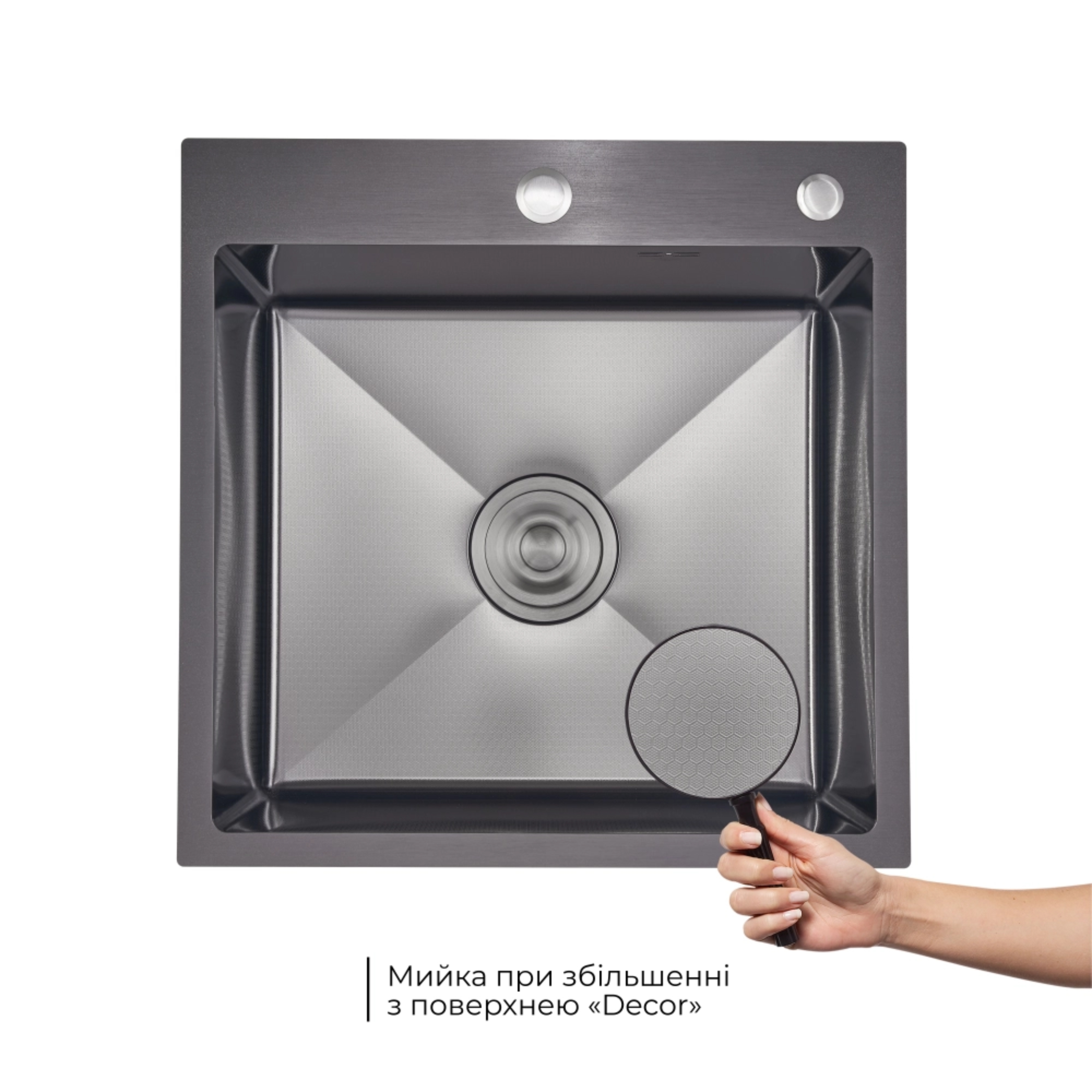 Характеристики Комплект Lidz Handmade H5050HB Мойка для кухни интегрированная Decor Black PVD Honeycomb в комплекте с дозатором+ Lidz K01G Корзина для кухонной мойки код товару SD00055251
