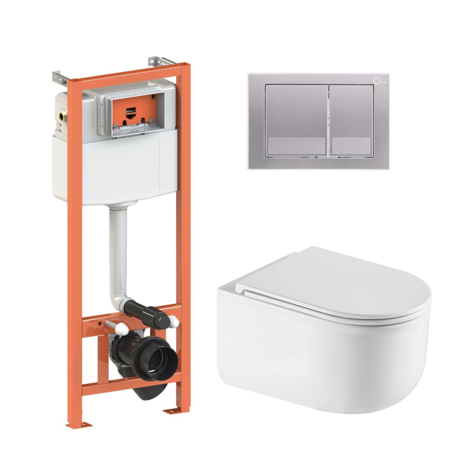 - Инсталляция: QT0133M425. Панель смыва: QT0111M06029SAT. Унитаз: QT2433084EUQW.
