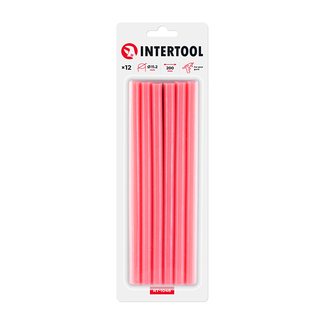 Характеристики Комплект розовых клеевых стержней 11,2 мм, 200 мм, 12 шт. INTERTOOL код товару RT-1046