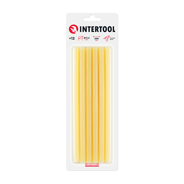Описание Комплект желтых клеевых стержней 11,2 мм * 200 мм, 12 шт INTERTOOL код товару RT-1021