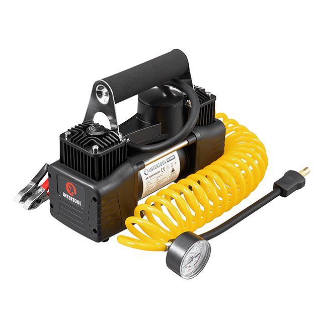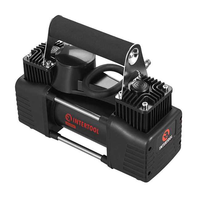 Характеристики Компресор автомобільний 12 В, 25 А, циліндр 2х30 мм, макс. 10 бар, шланг 0.25*2 м + PU 4.5 м, кабель живлення 3 м код товару AC-0005