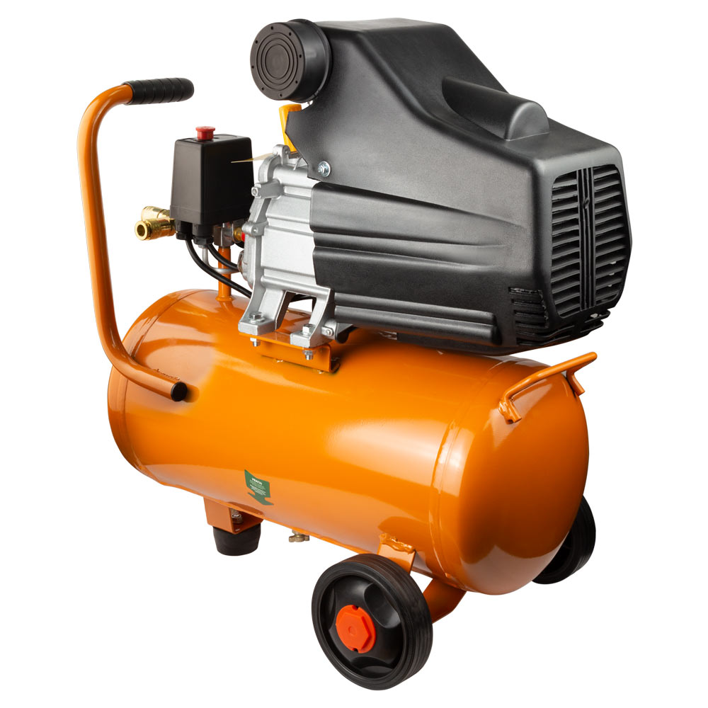 Этот компрессор — ваш надежный помощник. Легкий, но мощный. 1.5 кВт — это не шутки. 198 литров в минуту — дышит, как лев. 8 бар — давление, которое не подведет. 24 литра — идеальный объем для работы.