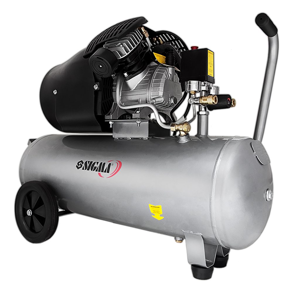 Описание Компрессор двухцилиндровый 2.5 кВт 455 л/мин 10 бар 50 л SIGMA (7043721) код товару 7043721