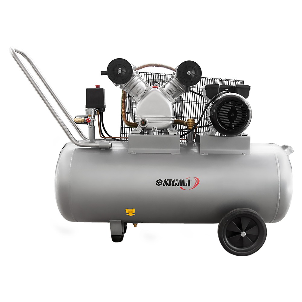 Характеристики Компрессор 2.5 кВт 100 л, 396 л/мин, 10 бар, 2 цилиндра, 2 крана SIGMA код товару 7044151