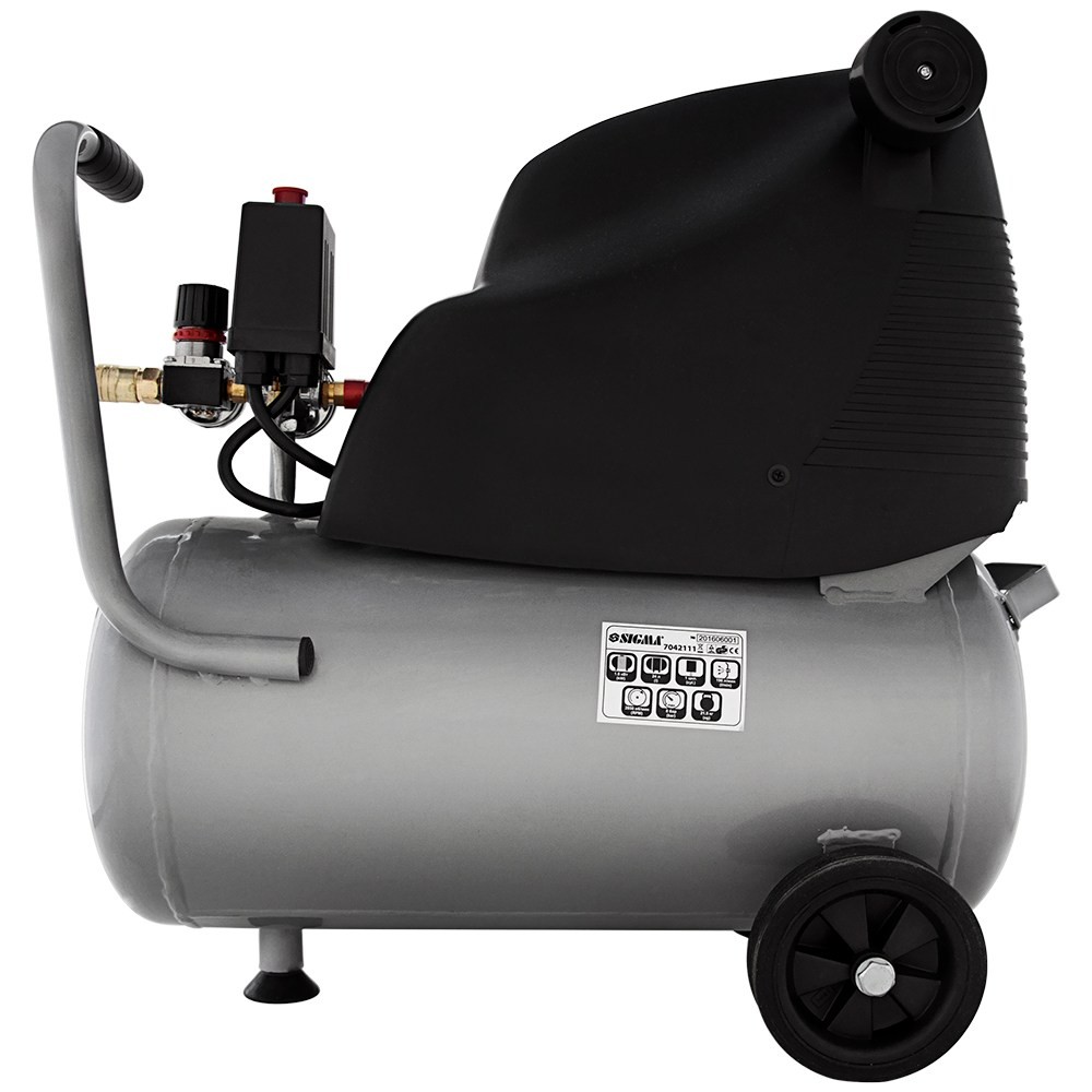 Компрессор одноцилиндровый безмасляный 1.5кВт 196л/мин 8бар 24л Sigma (7042111) предназначен для нагнетания сжатого воздуха с последующей его подачей под давлением в различные типы пневмоинструмента и пневмооборудования.
