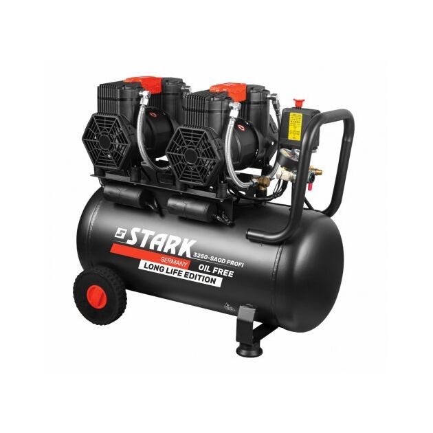 Компрессор поршневой безмасляный STARK 3250-SAOD Profi 50 л – профессиональное оборудование для подачи воздуха под давлением. Подходит для использования вместе с пневматическим инструментом, для накачивания шин, продувания и т.п. Предназначено для мастерских, СТО и т.д.