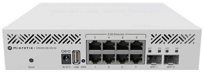 Скористайтеся перевагами неймовірно швидкої комбінації 2.5/10 Gigabit та оновіть свій робочий простір! Цей комутатор може використовувати весь потенціал RouterOS v7: запускати VLAN, Jumbo-кадри, агрегацію каналів, правила ACL та багато іншого! Світ мережевих технологій перебуває у русі. Навіть невеликі офіси переходять від гігабітних з'єднань до блискавичних 2.5-гігабітних з'єднань. MikroTik CRS310-8G+2S+IN надає користувачам інструменти, що дозволяють випередити конкурентів завдяки потужному поєднанню восьми 2.5 Gigabit Ethernet та двох 10 Gigabit SFP+ портів у компактному та потужному корпусі! Крім того, ці SFP+ слоти підтримують кілька швидкостей передачі даних: 1G, 2.5G та 10G. Таким чином, при необхідності можна використовувати цей комутатор як комутатор 10x2.5G. Класична гнучкість MikroTik!
