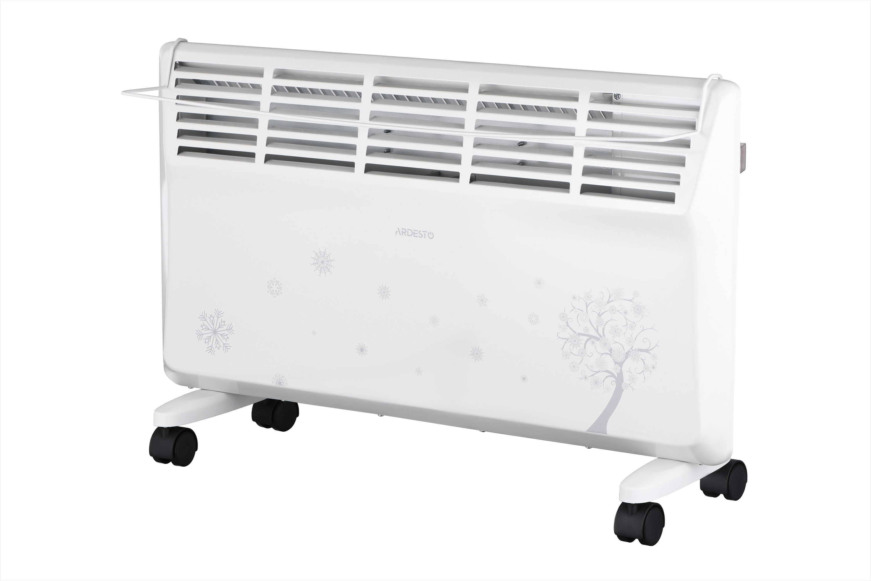 Електричний конвектор з механічним керуванням білого кольору зі стильним візерунком, класом захисту IP20 і двома режимами потужності 1 000/2 000 Вт. Розрахований на обігрів приміщень площею до 20 м2. Клас енергозахисту – перший. У цій моделі передбачено сушку та контейнер для природного зволоження повітря. Є захист від перегріву та датчик від перекидання. Ця модель обігрівача має два типи монтажу – настінний і підлоговий. Кронштейни та опори із коліщатками для підлогового встановлення постачають у комплекті з обігрівачем.
