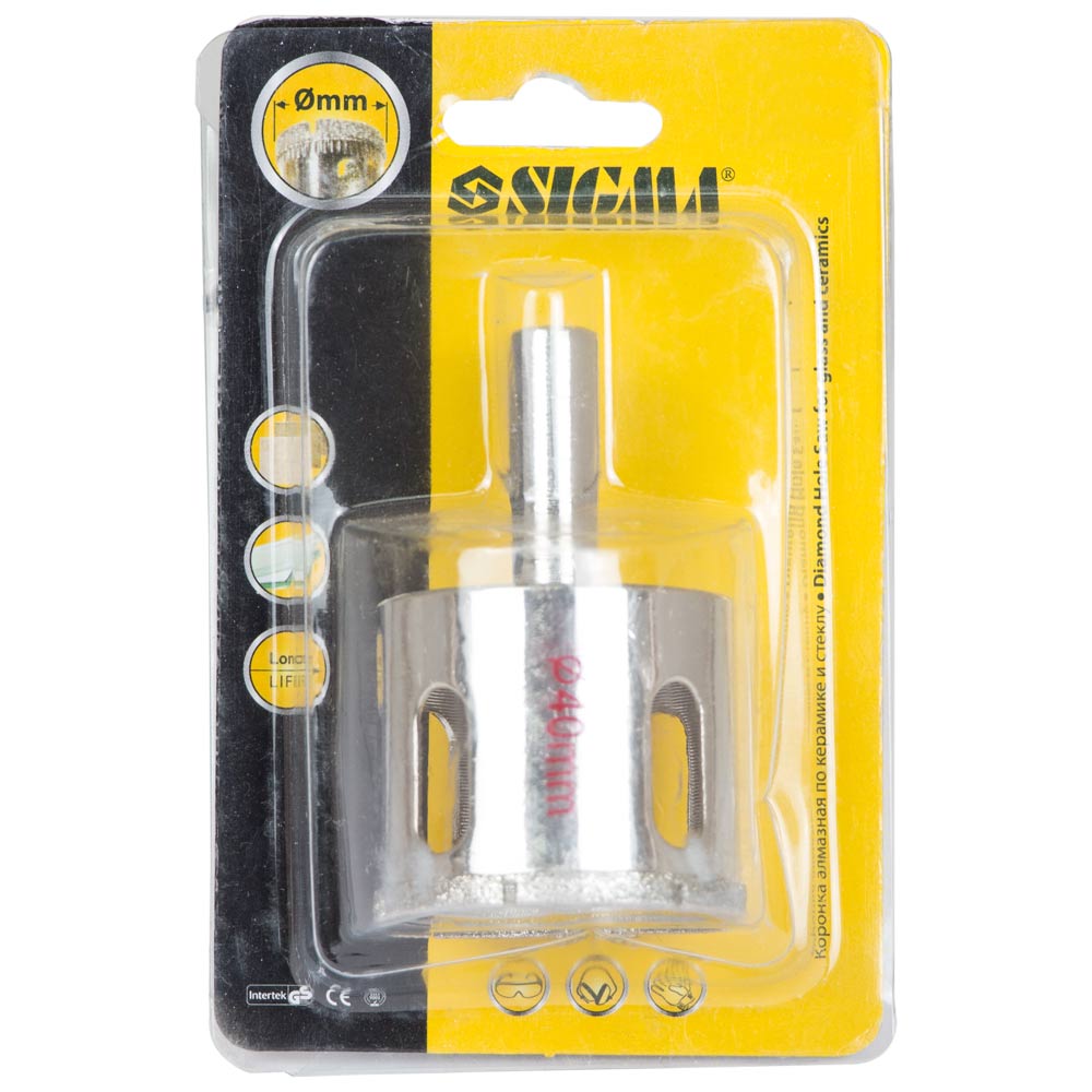 Характеристики Алмазные коронки по керамике и стеклу 40мм SIGMA (1541401) код товару 1541401