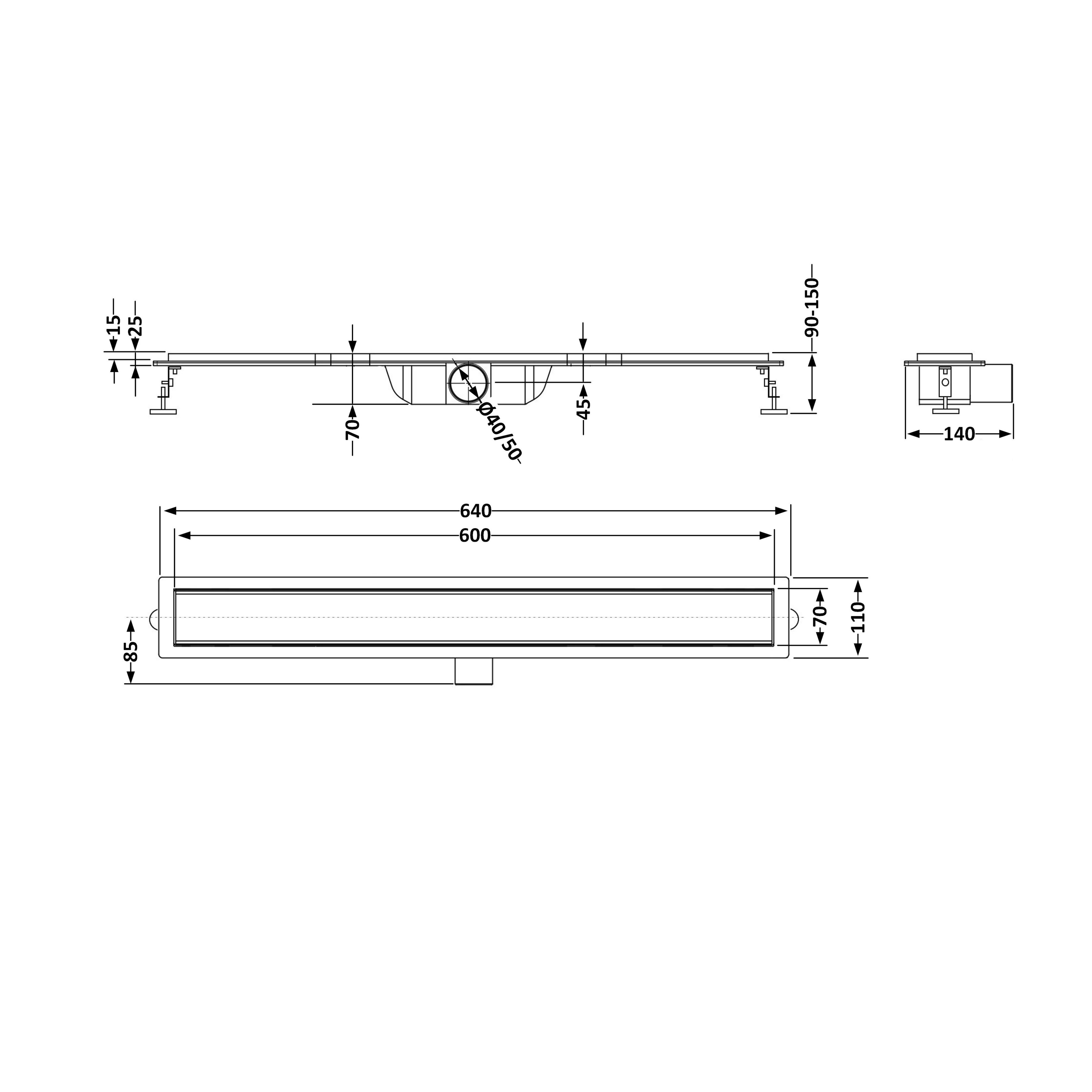 Характеристики Корпус линейного трапа Taurus 600 из нержавеющей стали с сухим затвором код товару SD00053571