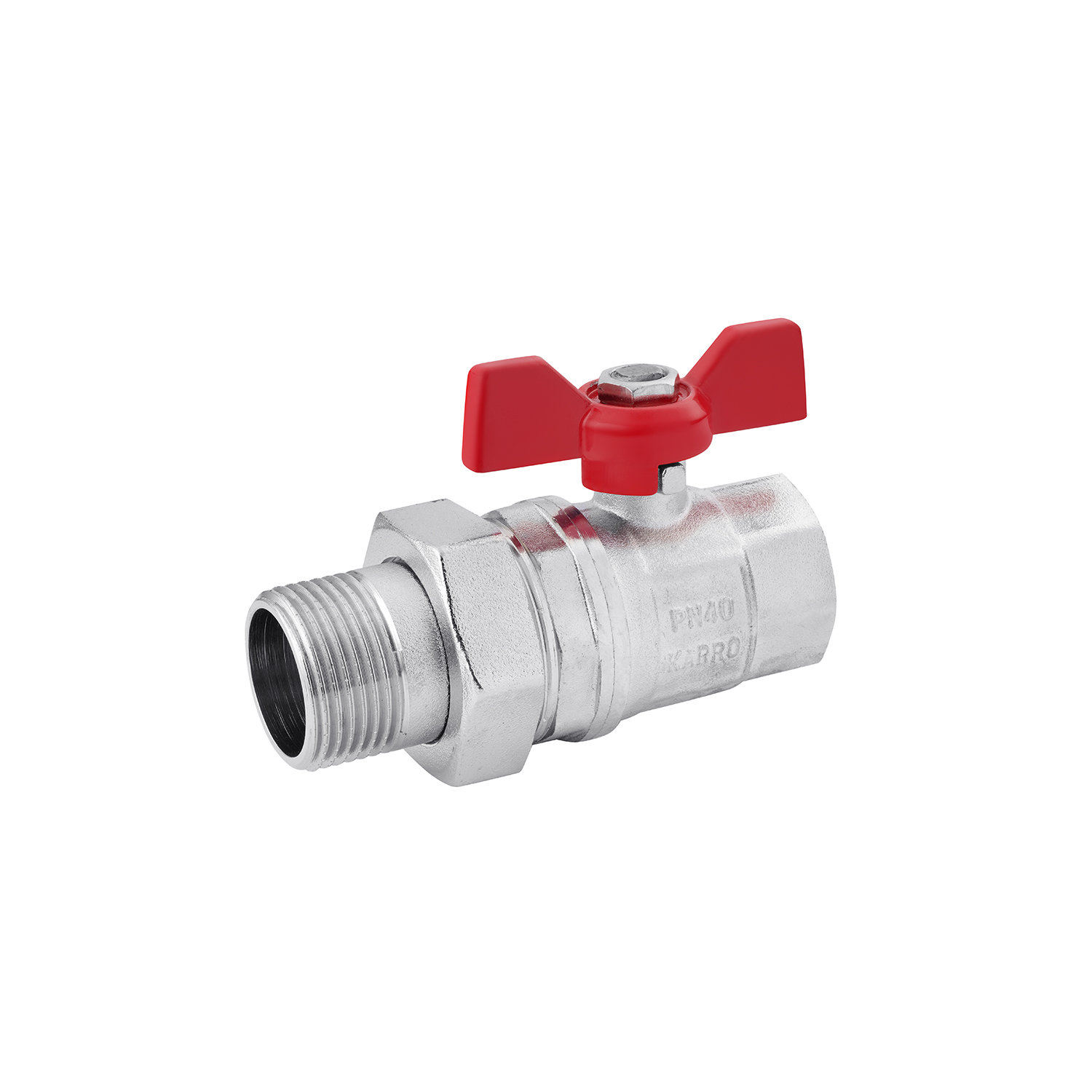 Кран-американка шаровой Karro Standart+ 1 ВН PN40 бабочка никелированный