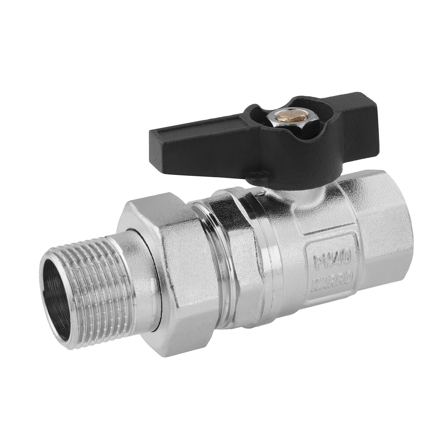 Кран-американка шаровой прямой Karro UNO 3/4" ВН PN40, ручка «бабочка»