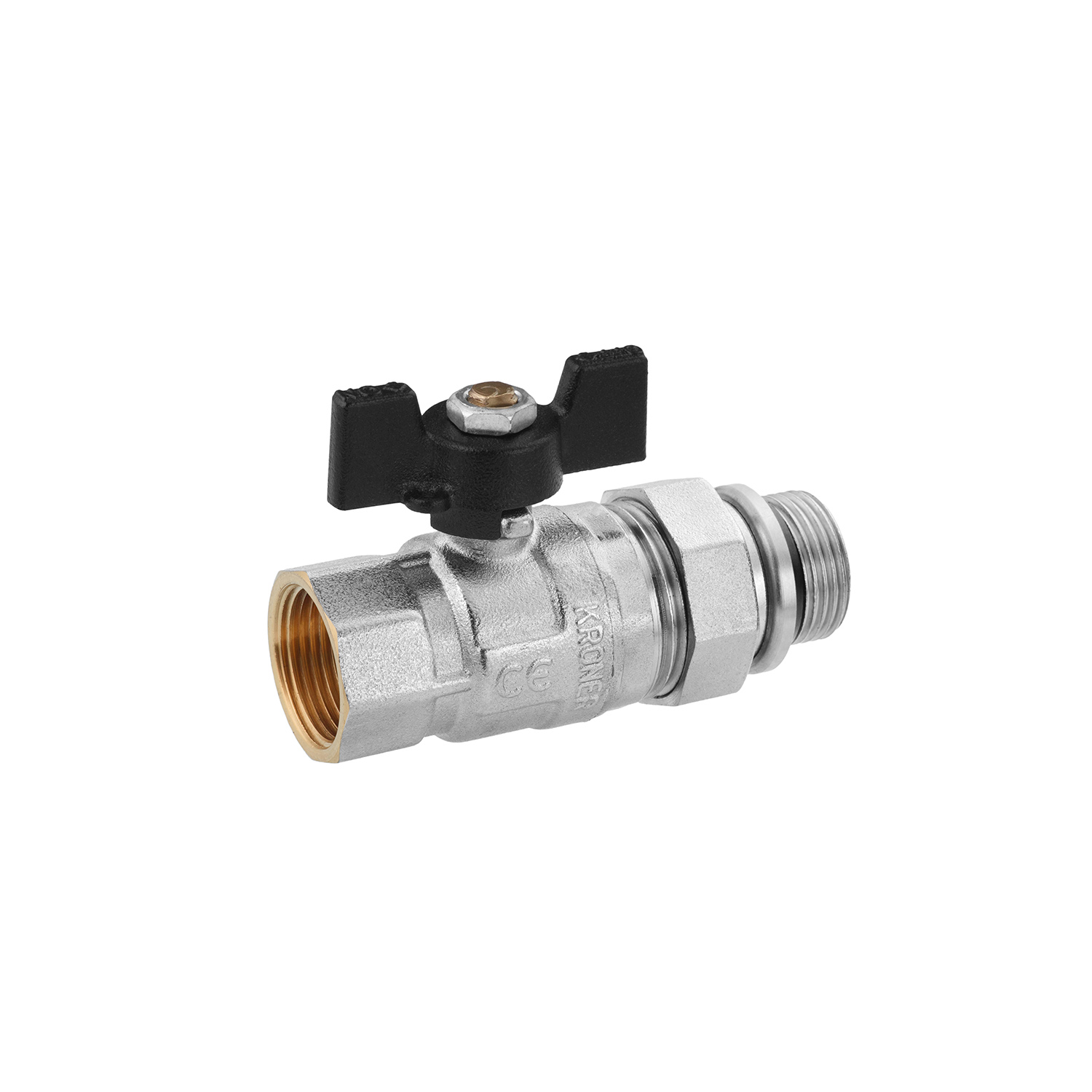 Кран американка шаровой WaGa 3/4 PN40 с бабочкой, никелевый