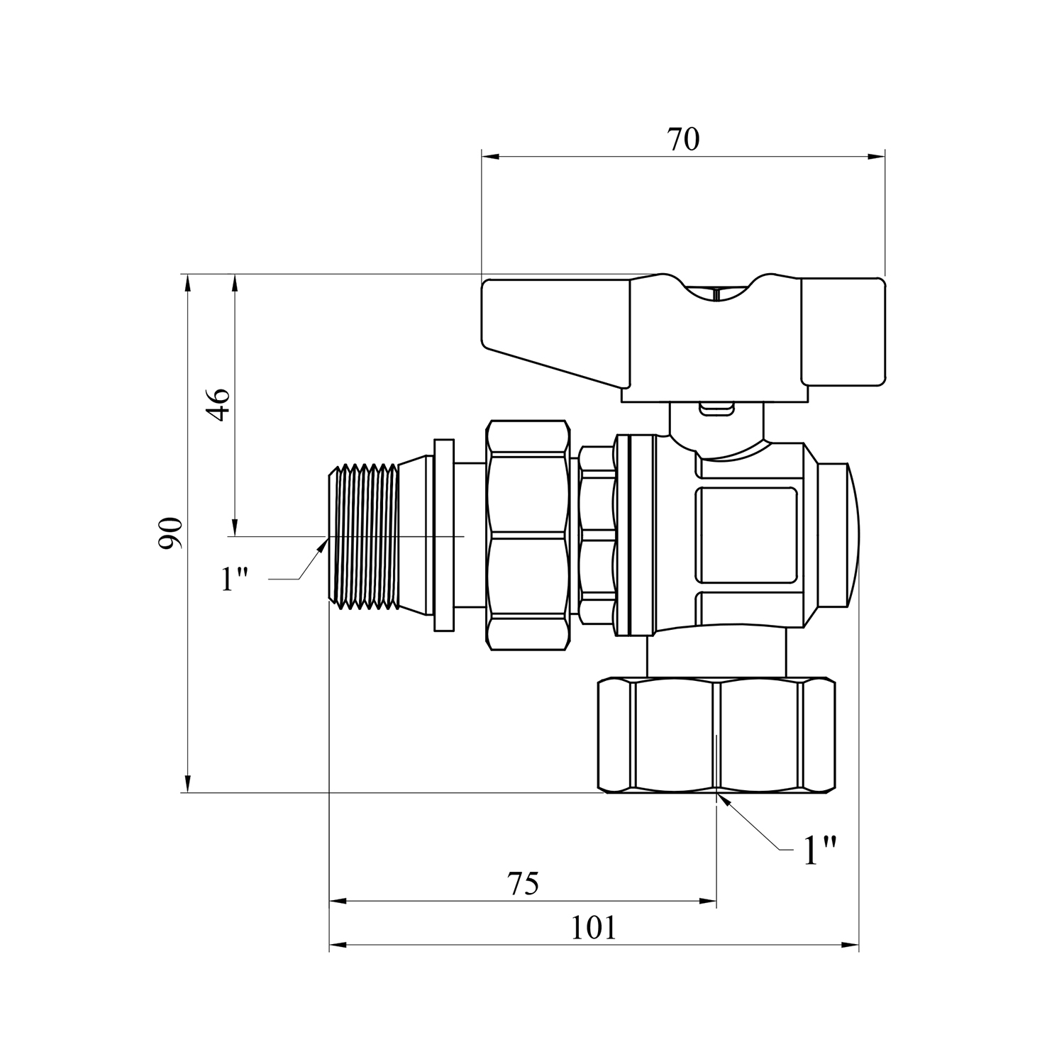 Кран-американка шаровой угловой Karro UNO 1" ВН PN40, ручка «бабочка»