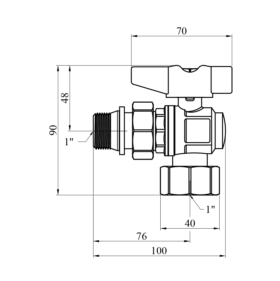 Кран-американка шаровой угловой Karro UNO 1" ВН PN40, ручка «бабочка»