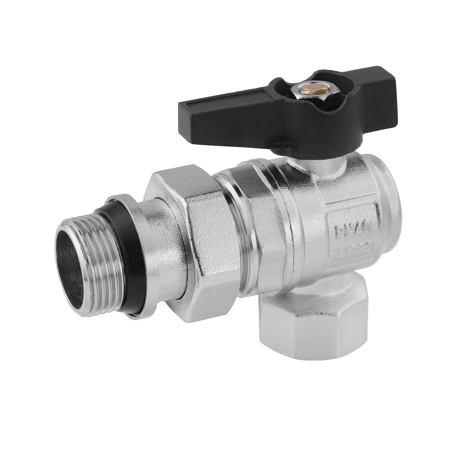 - Тип конструкции: угловой шаровой кран с американкой