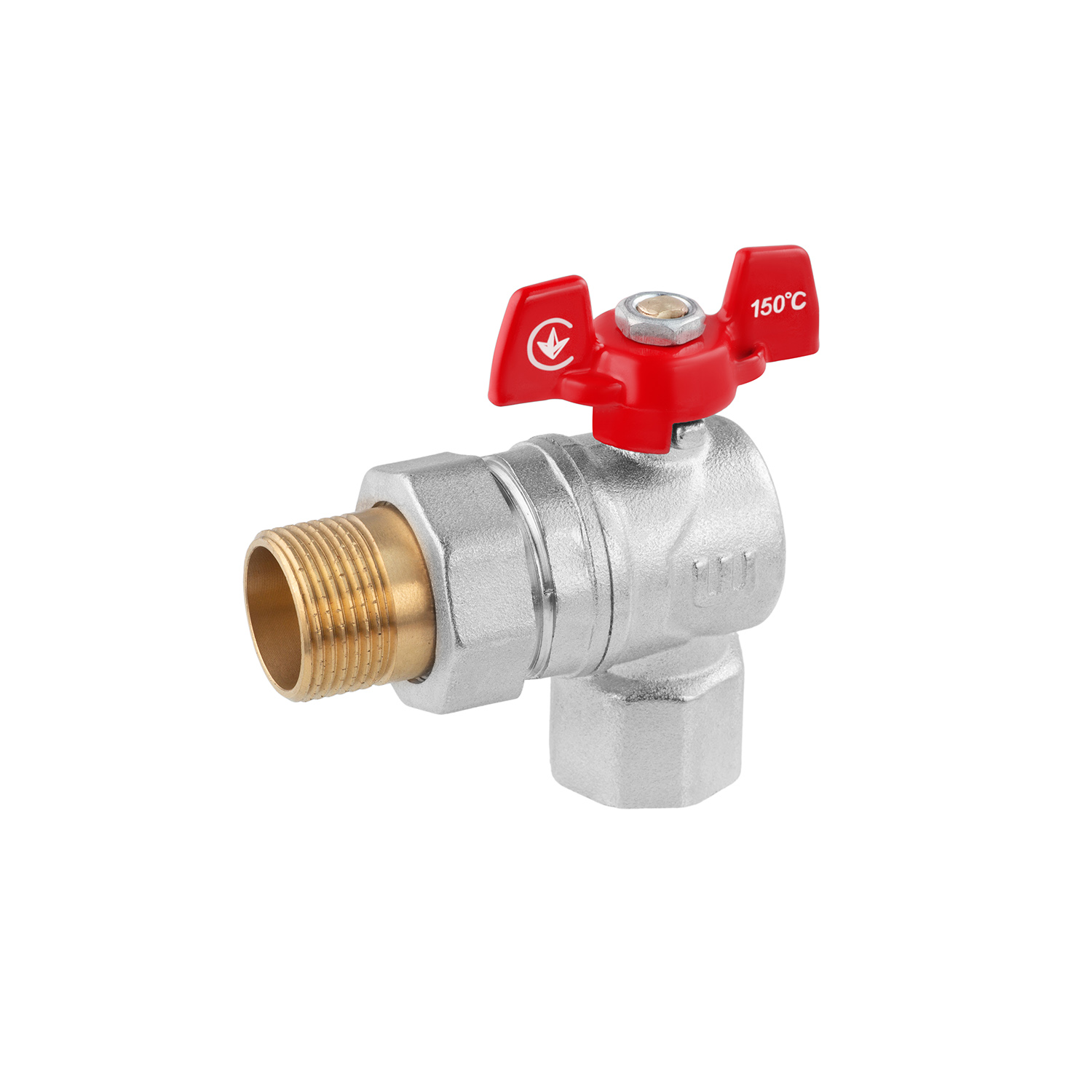 Описание Кран угловой шаровой WaGa 3/4" PN40 бабочка, никелированный код товару CV034309