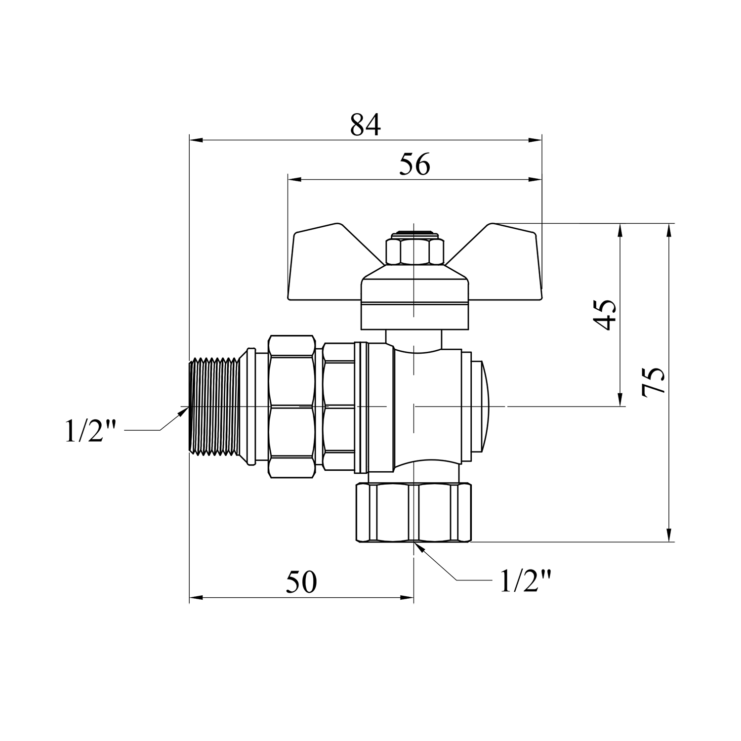 Характеристики Кран угловой STA LB 1/2 ВН PN40 никелированный зеленая бабочка код товару CV021973