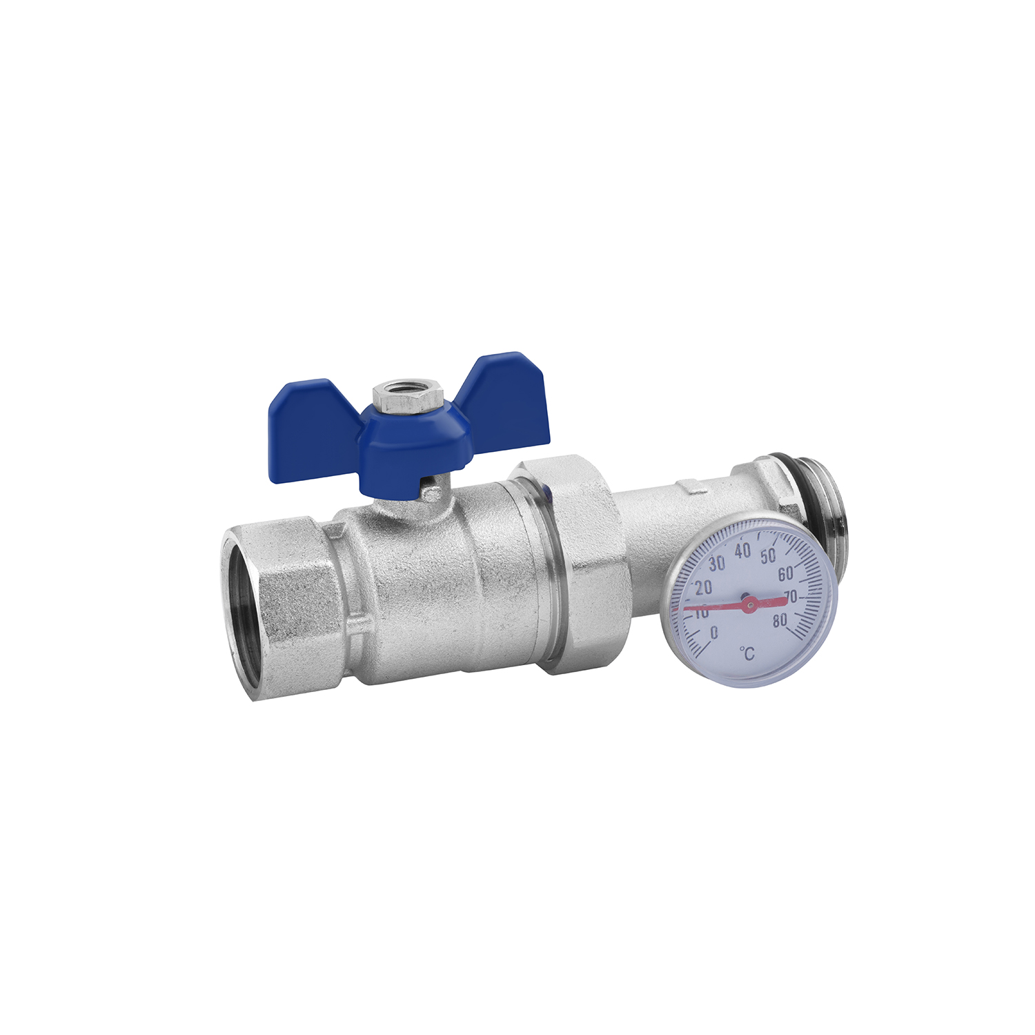 Кран коллекторный Karro 1 ВН прямой с термометром никелированный