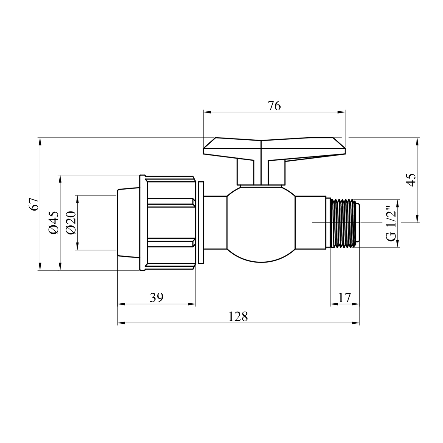 Кран ПЭ SantehPlast 20х1/2" РН — это шаровой кран с комбинированным соединением: компрессионным (20 мм) и резьбовым (1/2" наружная резьба, РН). Используется в системах водоснабжения, полива и технических трубопроводах, обеспечивая надежное и герметичное соединение.