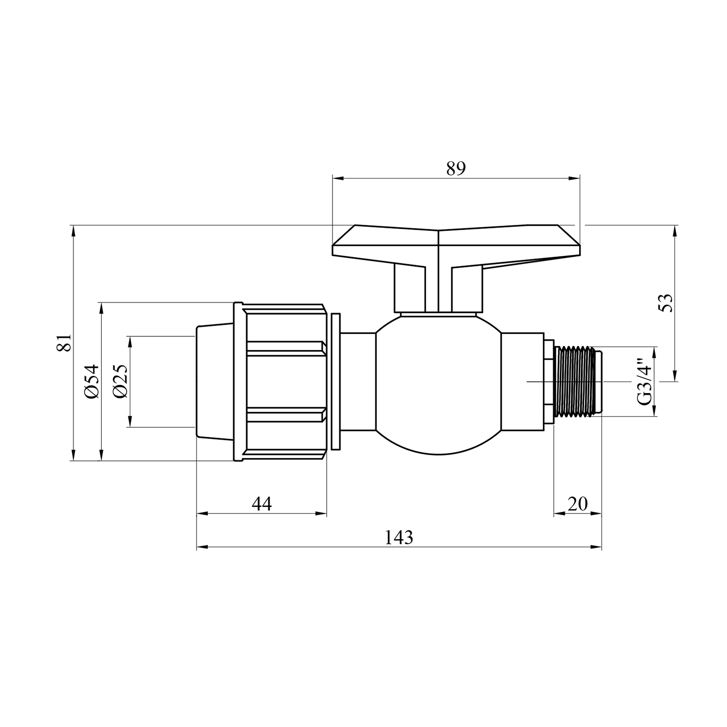 Характеристики Кран ПЕ SantehPlast 25х3/4" РН код товару CV035224