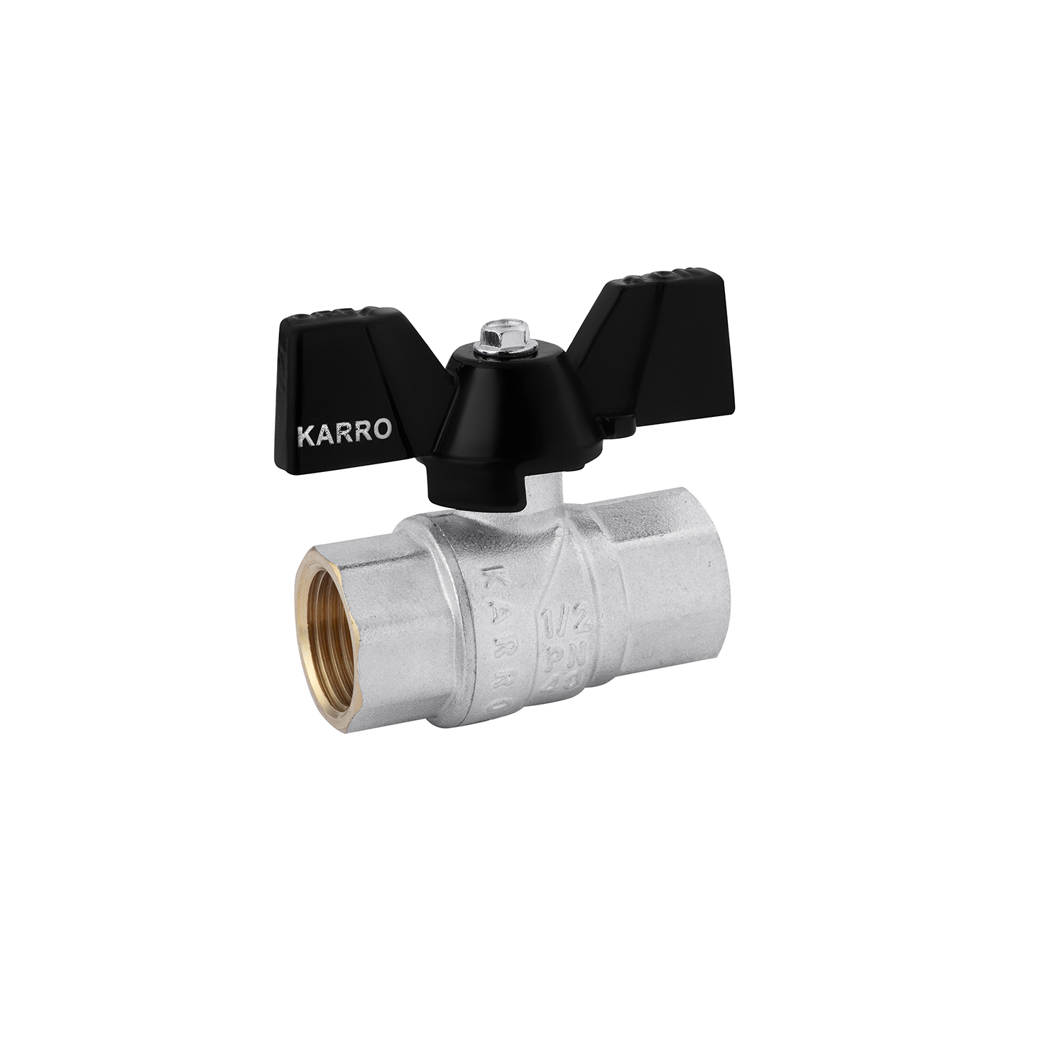 Характеристики Шаровой кран Karro Premium 1/2" ВВ PN40, никелированный, бабочка код товару CV008223