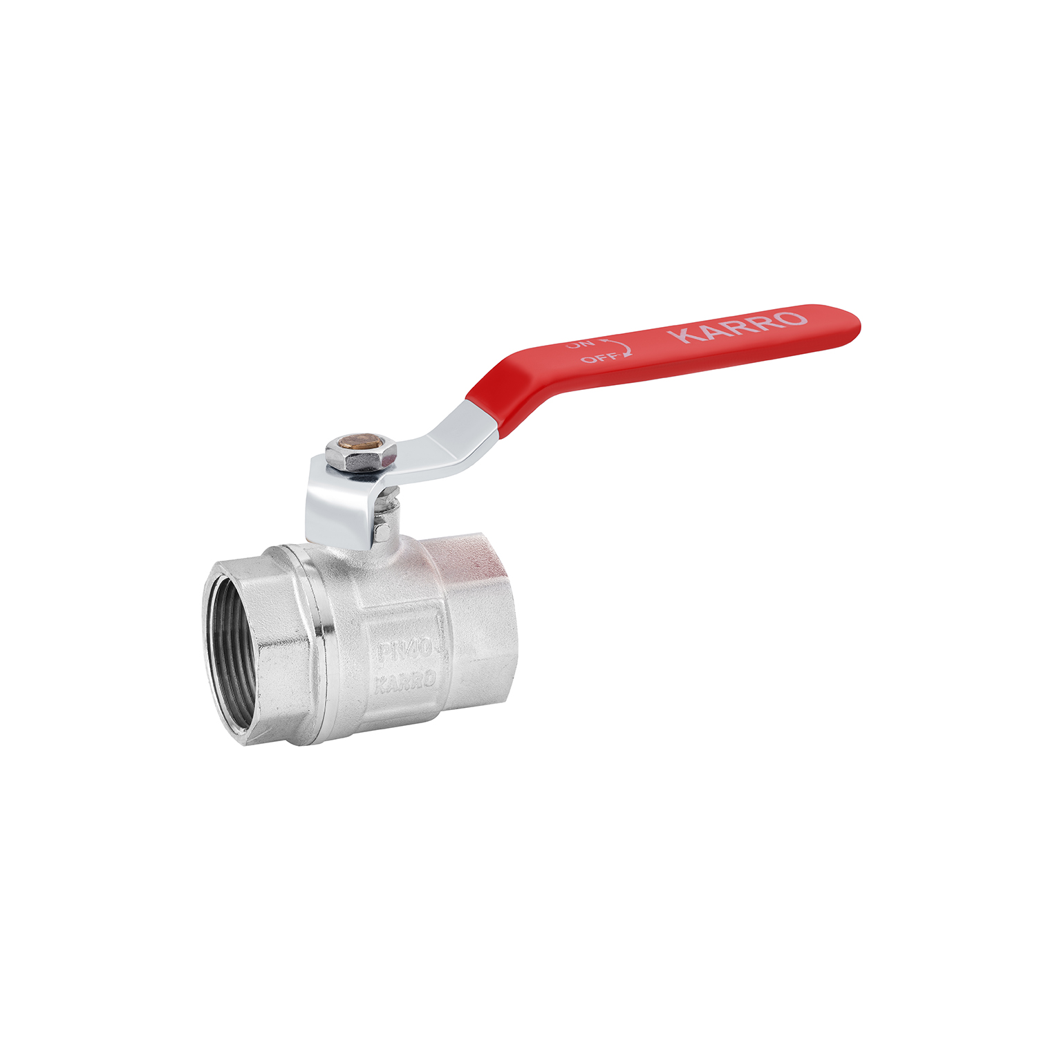 Кран шаровой Karro Standart+ 1 1/4 ВВ PN40 никелированный с ручкой
