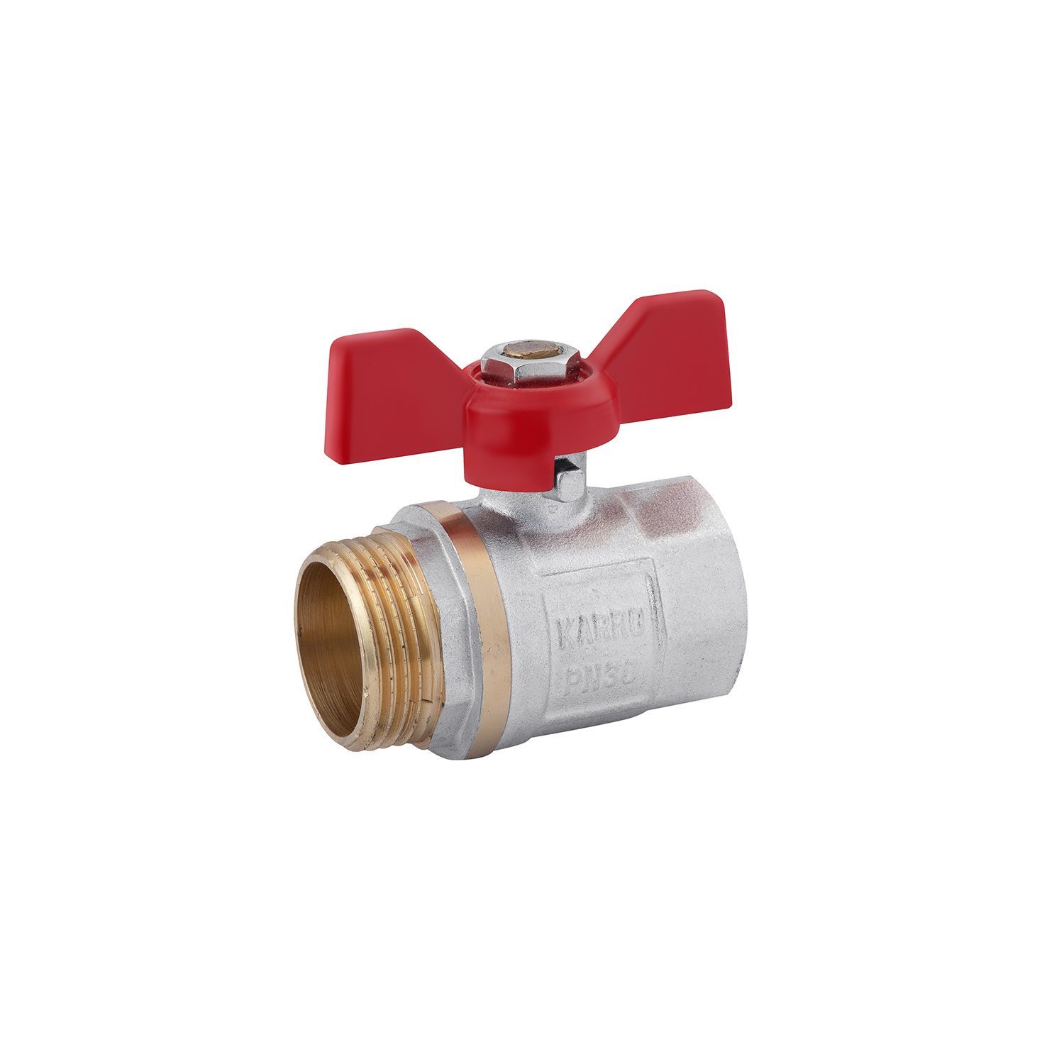 Характеристики Кран шаровой Karro Standard 1 ВН PN30, никелированный, бабочка код товару CV013651
