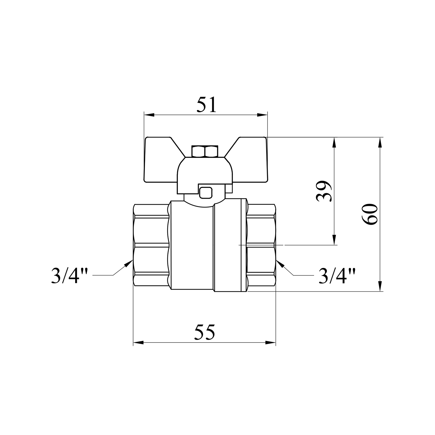 Характеристики Кран шаровой Karro Standart+ 3/4 ВВ PN40 бабочка, никелированный код товару CV011406