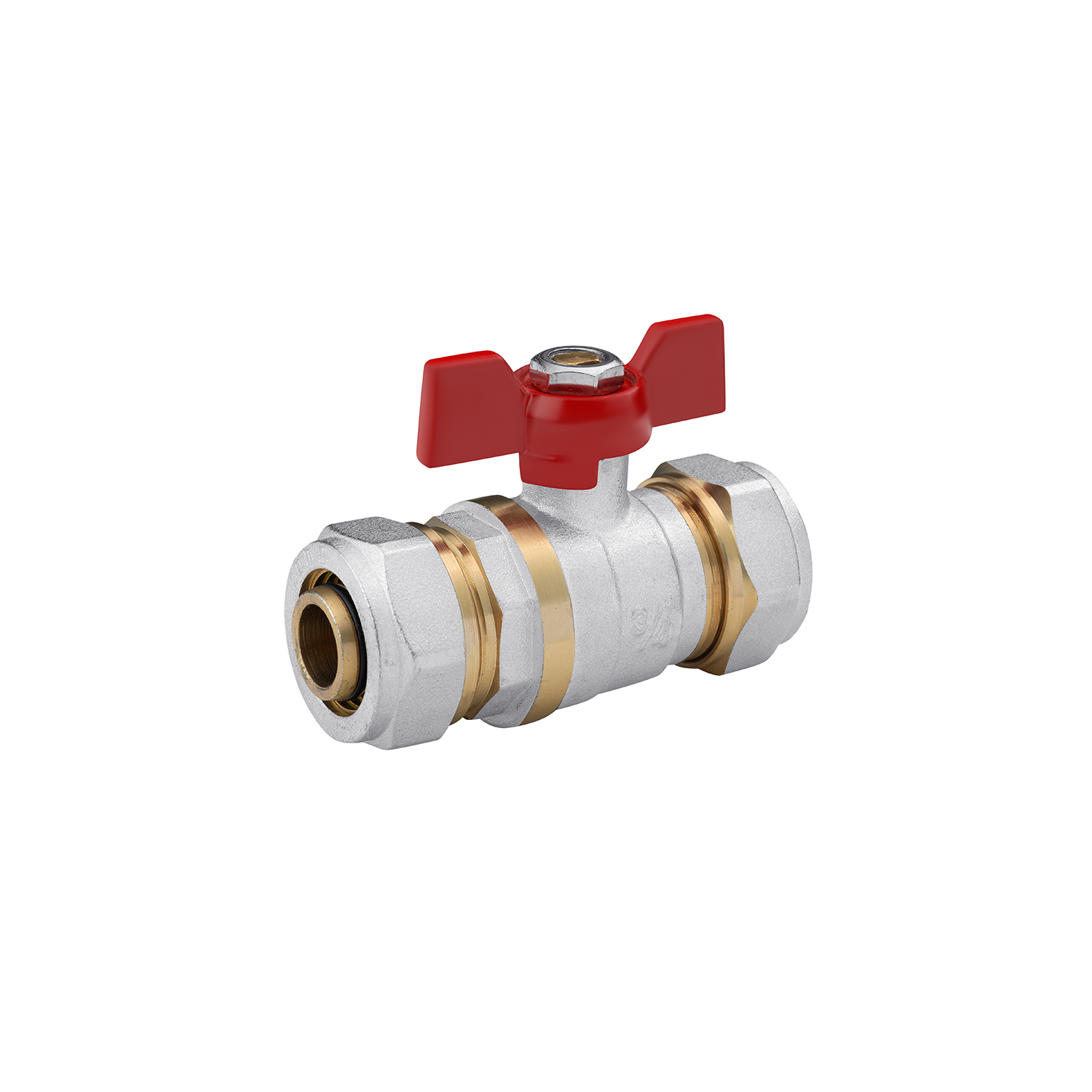 Кран шаровой металлопластиковый Karro 20х20 бабочка, никель