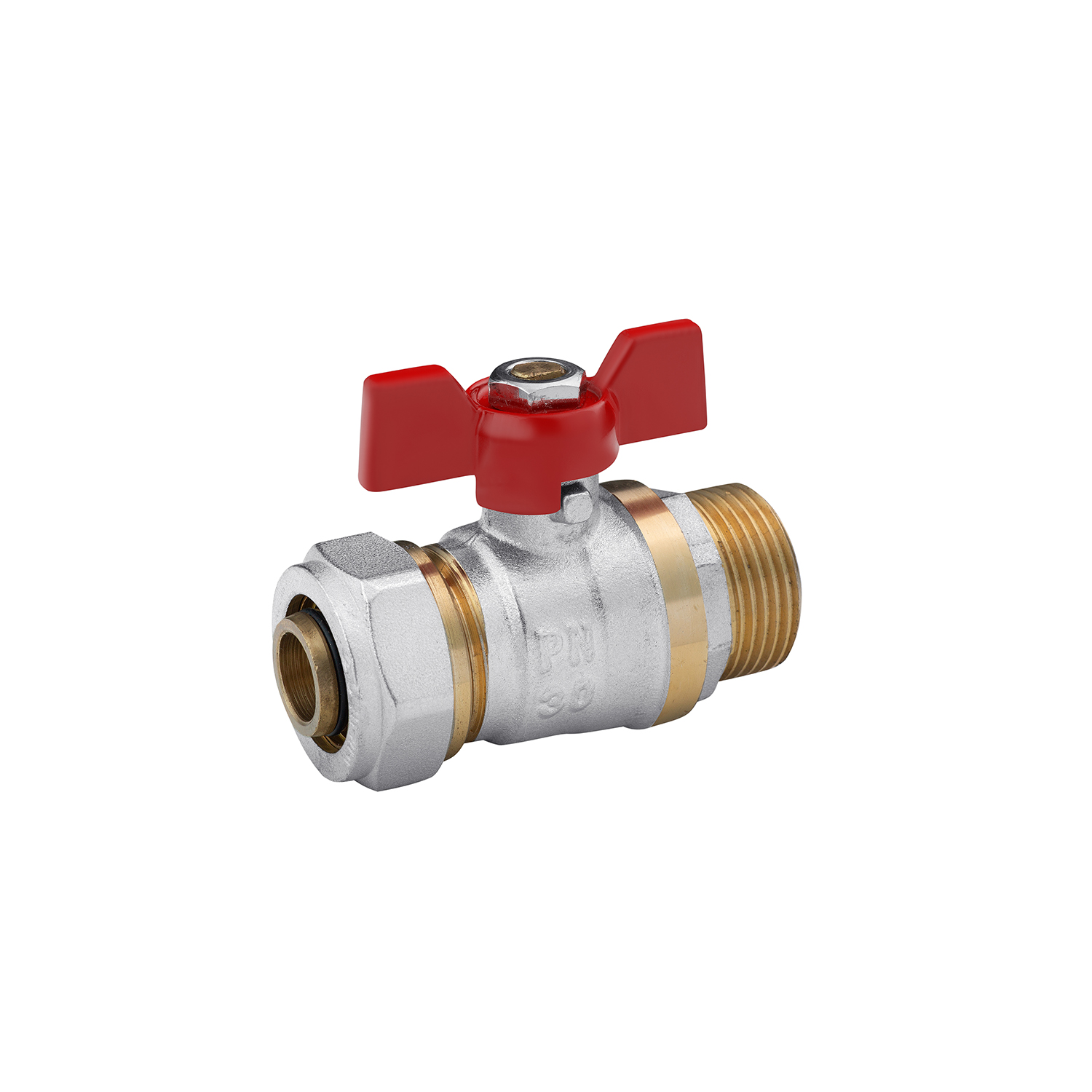 Характеристики Кран шаровой металлопластиковый Karro 20х3/4 с бабочкой, никелированный код товару CV006897