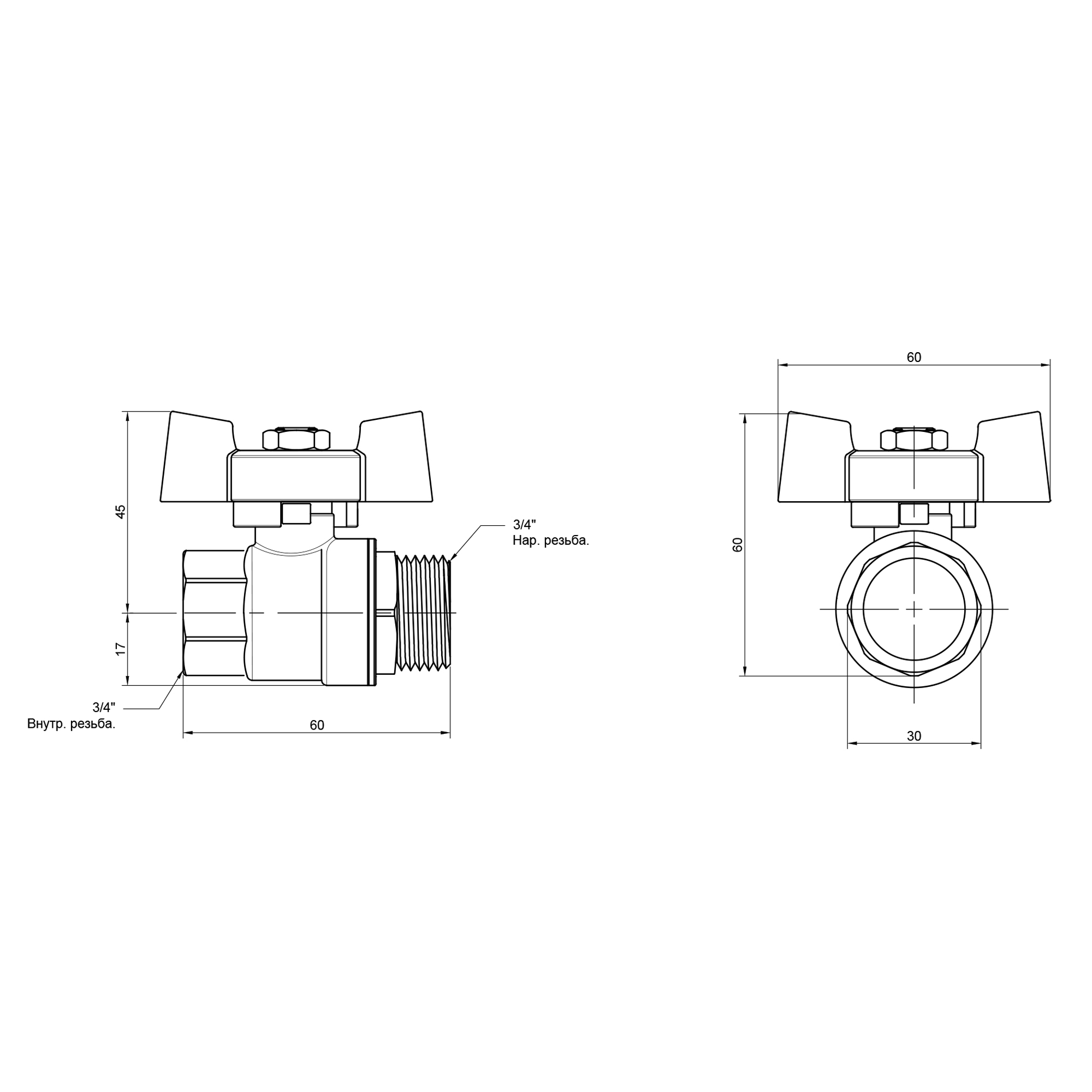 Описание Кран шаровой Thermo Alliance Standart 3/4" ВН для воды (бабочка) SD607NW20PN40 код товару SD00021333