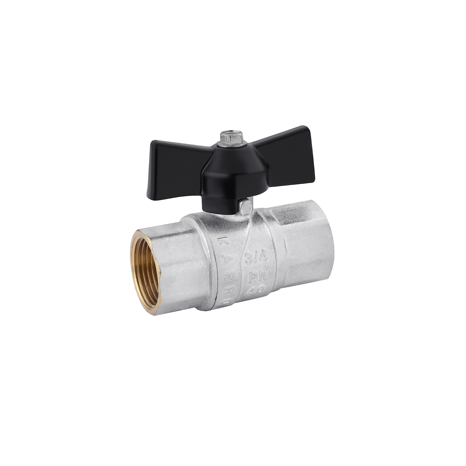 Кран шаровой Karro Super 3/4 ВВ PN40 никелированный с бабочкой