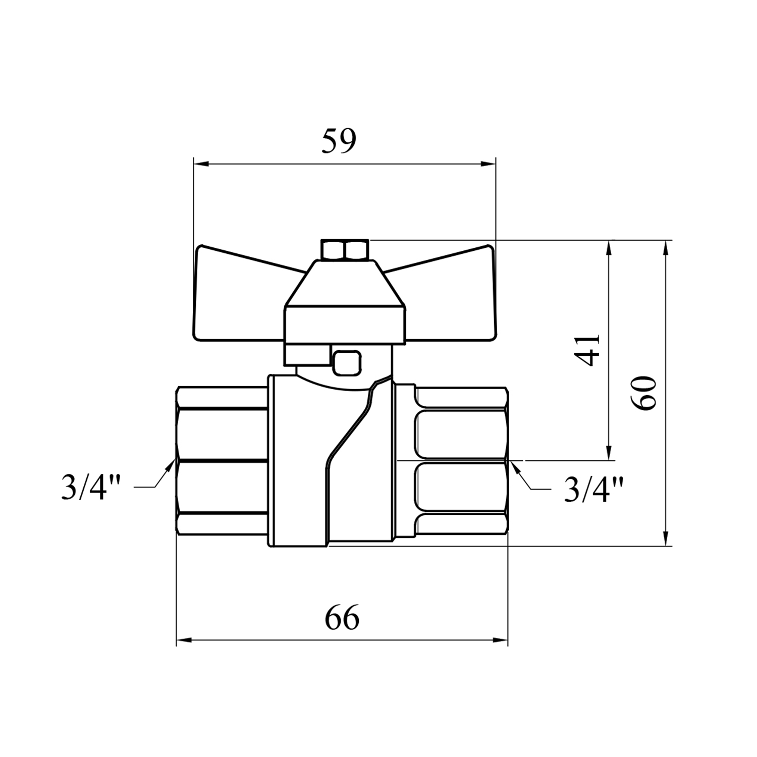 Описание Кран шаровой Karro Super 3/4 ВВ PN40, никелированный, бабочка код товару CV025255