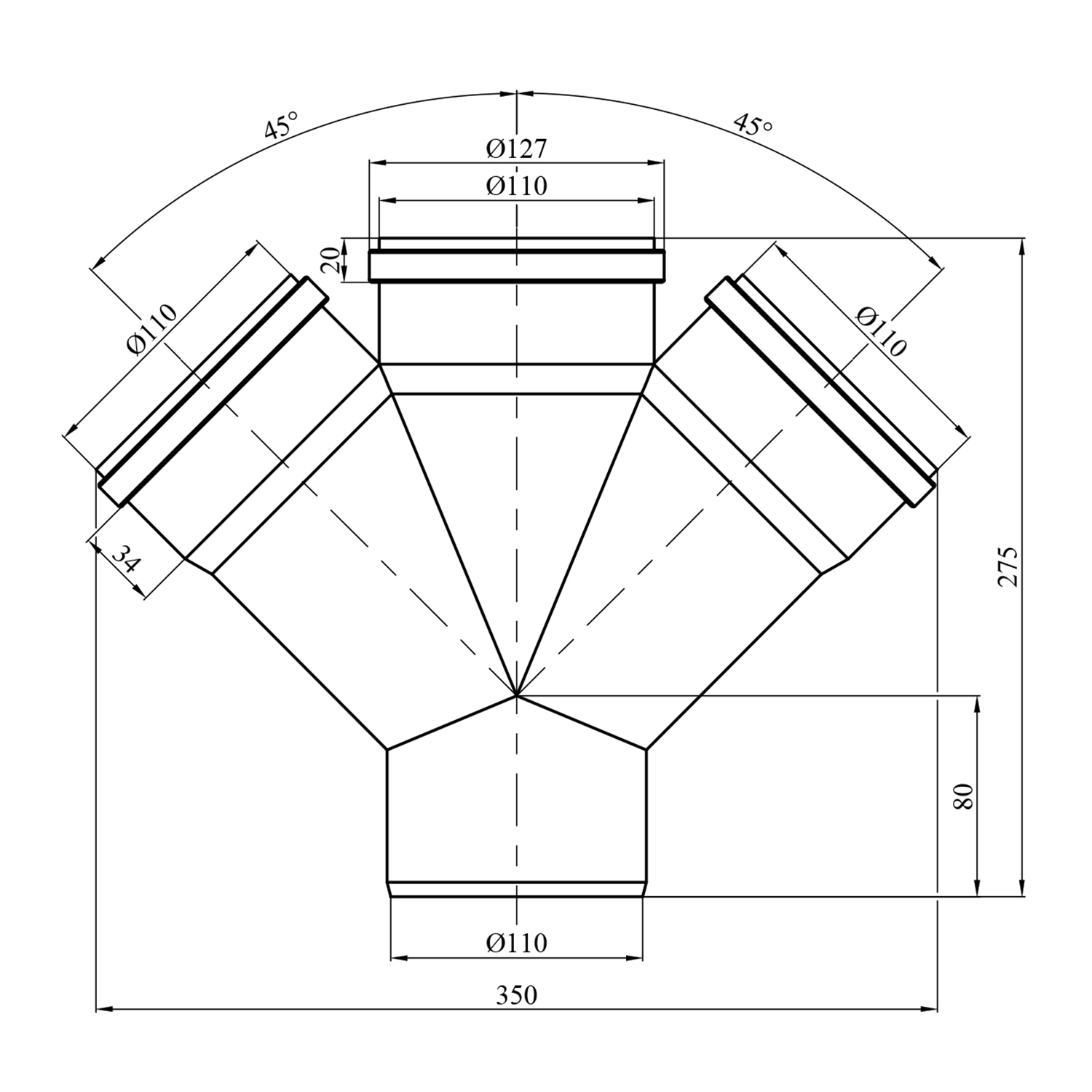 - Тип: Крестовина для внутренней канализации